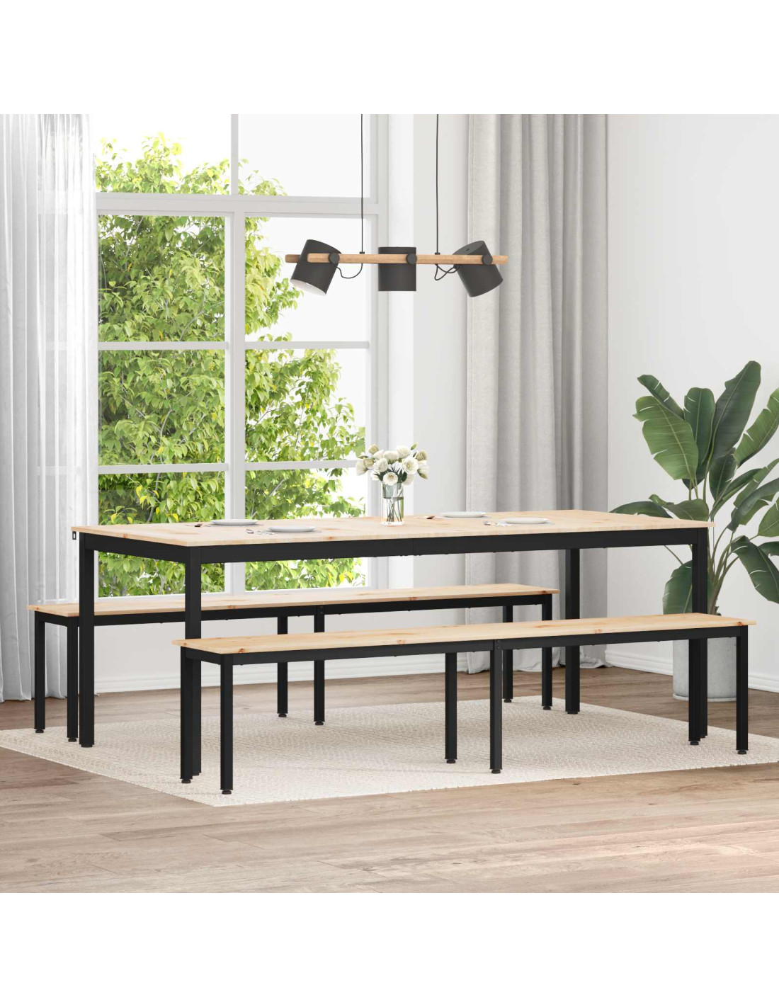 Questa panchina moderna mescola eleganza e funzionalità, rendendola perfetta per diverse sistemazioni in sale da pranzo, patii o ingressi. Le sue linee semplici e il look minimal sono ideali per molti stili di decorazione. Costruita con legno di pino massello e supportata da gambe quadrate in metallo, questa panchina è pensata per l'uso quotidiano, perfetta per riunioni o per offrire una comoda seduta a famiglia e amici.