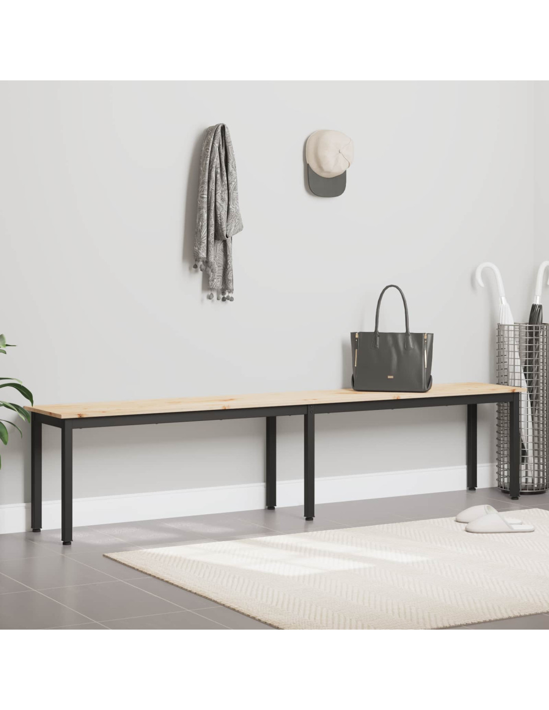 - Gambe in metallo solide Le gambe in metallo quadrato forniscono una base stabile. Resistente nell'uso quotidiano, aggiunge anche un tocco di stile industriale. Questa panchina è comoda anche per più persone insieme.