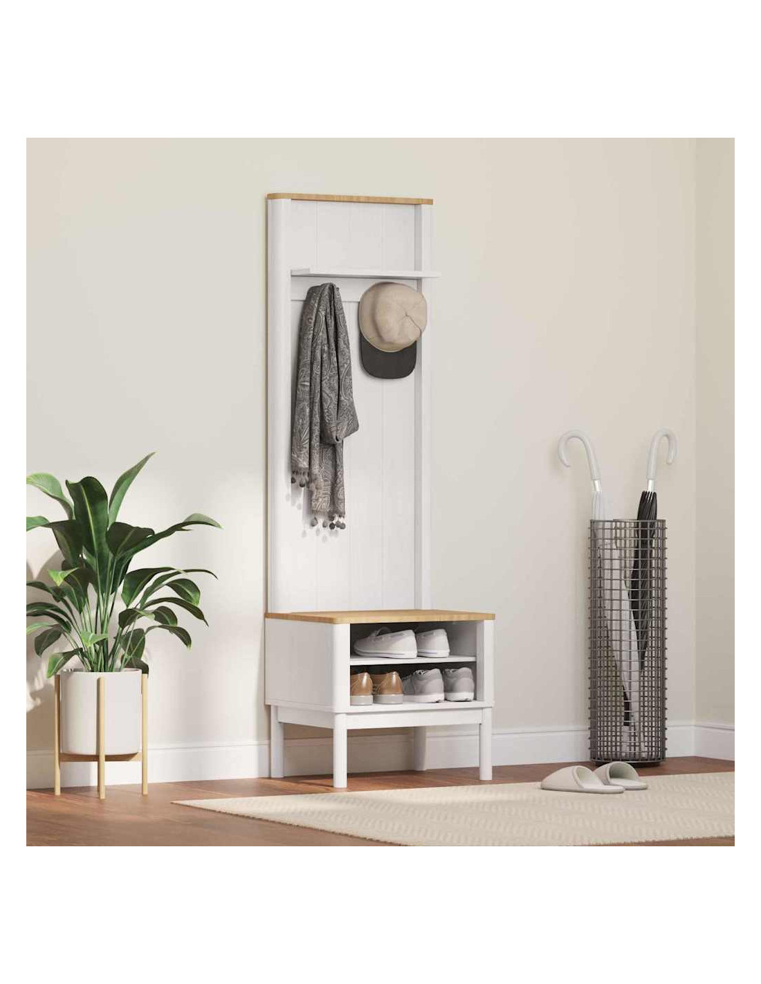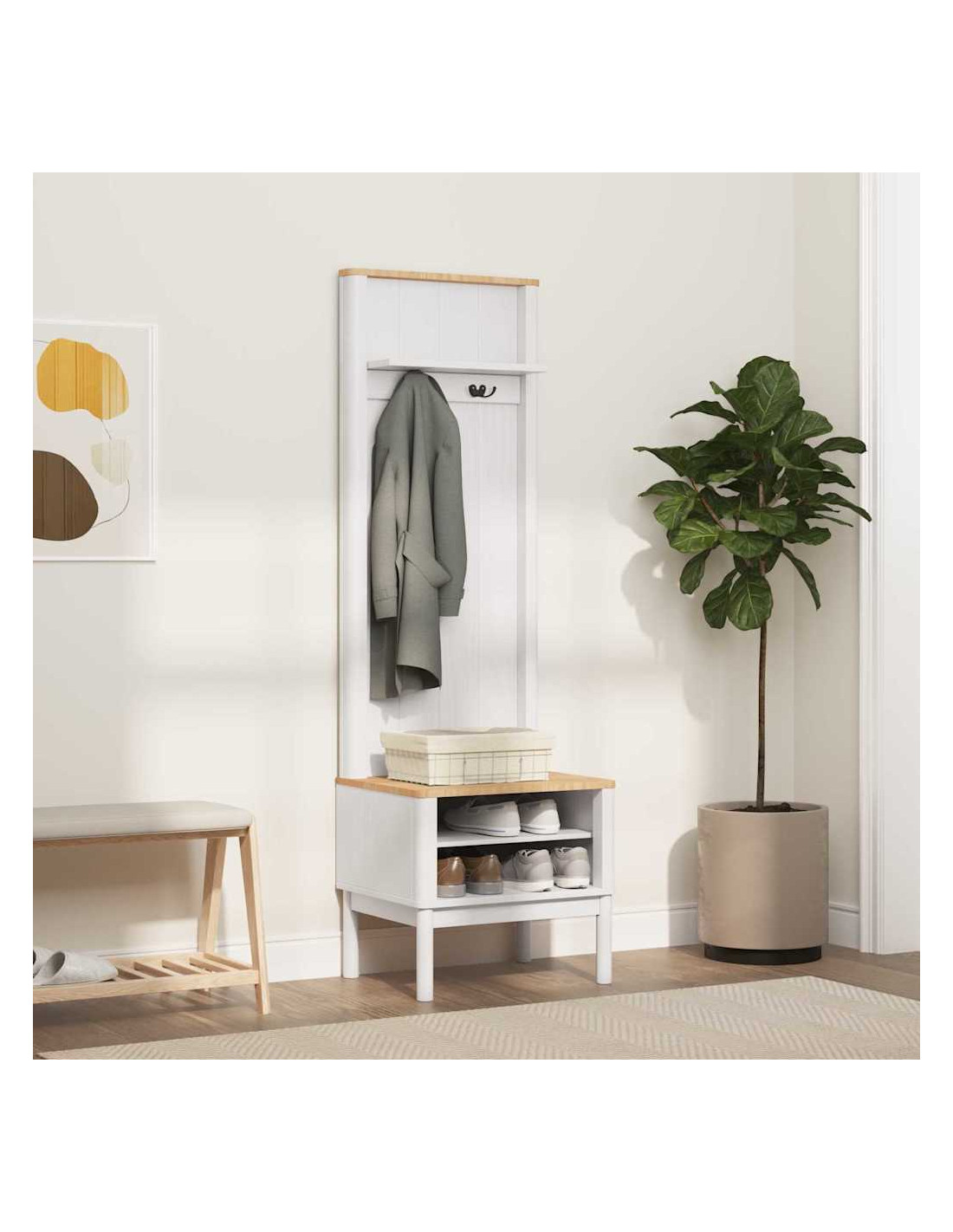 - Materiale in pino massello: Questo armadio è realizzato in legno massello di pino, apprezzato per la sua bellezza e durata. Questo materiale porta un tocco estetico e robustezza, garantendo resistenza anche con un uso frequente. La sua solidità rende questo mobile un'ottima scelta per riporre oggetti personali, mentre la finitura contemporanea in pino esalta il suo design minimalista, perfetto per i corridoi moderni.