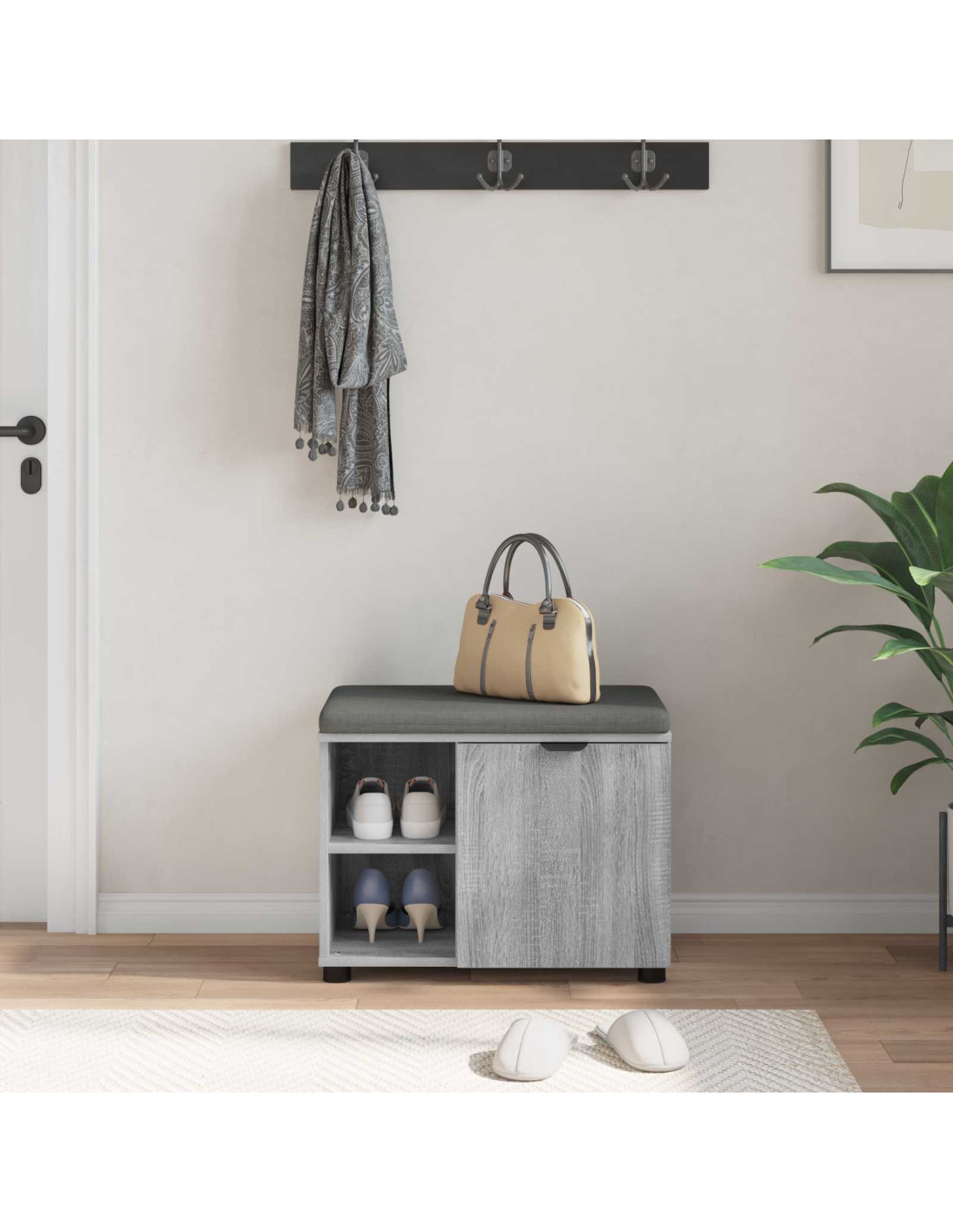 - Funzionalità di Stoccaggio: Con un ampio spazio di stoccaggio, questa panchina non è solo un posto dove sedersi, ma anche un elemento utile. I ripiani interni aiutano a mantenere scarpe, cappelli e borse in ordine, facendo sembrare l’ingresso sempre pulito.