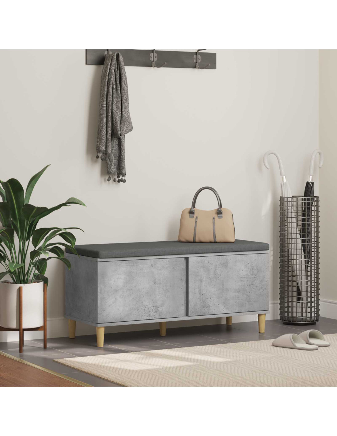 - Spazio di archiviazione: Sotto il sedile trovi un giro di grande archiviazione. Questo vano, facile da raggiungere sollevando il cuscino, mantiene scarpe, ombrelli o oggetti a stagioni ordinati e fuori vista, contribuendo a tenere l'ambiente in ordine.