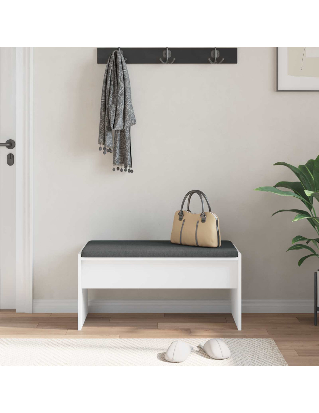 Questa panca moderna non è solo elegante, ma anche molto funzionale. Con la sua forma rettangolare, arricchisce ogni corridoio o ingresso. Le linee pulite e il design minimalista la rendono perfetta per chi ama la semplicità nel proprio arredamento. Che si tratti di ingresso o corridoio, questa panca invita a sedersi e rende lo spazio accogliente per famigliari e ospiti.