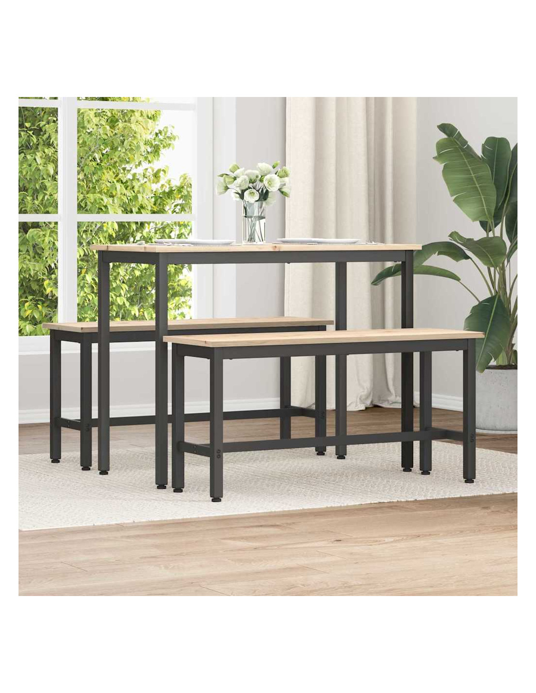 - Combinazione di materiali: La panchina è fatta di legno massello di pino, offrendo un tocco naturale e solidità. Le parti in acciaio garantiscono una struttura forte per l'uso quotidiano, mantenendo l'eleganza.
