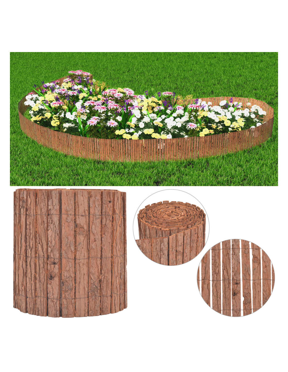 Questa bordatura da giardino in corteccia è leggera e flessibile e può essere utilizzata per separare sezioni del giardino o per delimitare un percorso o un vialetto di ingresso aggiungendo un tocco di fascino rustico all'ambiente esterno. Il suo aspetto naturale si adatta a qualsiasi stile di arredamento da giardino. Grazie alle fascette o ai punti metallici che mantengono la recinzione flessibile in posizione verticale, è molto facile creare sezioni di forme e dimensioni diverse.