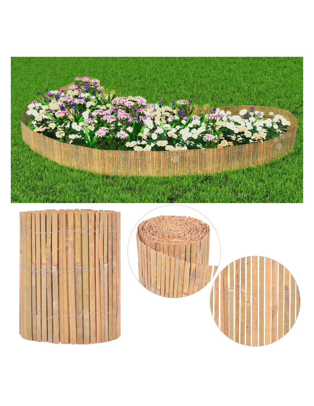 Questa recinzione da giardino è realizzata con listelli di bambù e può essere utilizzata per separare sezioni del giardino o per delimitare un percorso o un vialetto di ingresso aggiungendo un tocco di fascino tropicale all'ambiente esterno. Il suo aspetto naturale si adatta a qualsiasi stile di arredamento da giardino. Grazie alle fascette o ai punti metallici che mantengono la recinzione flessibile in posizione verticale, è molto facile creare sezioni di forme e dimensioni diverse.