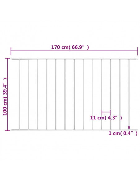 Questo pannello di recinzione, realizzato in resistente acciaio verniciato a polvere, costituirà una struttura divisoria robusta e duratura per il vostro giardino. Il pannello, resistente agli agenti atmosferici e alla corrosione, risulta ideale per permettere di tenere lontani ospiti indesiderati dalla vostra proprietà. La recinzione da giardino può essere facilmente montata nel terreno grazie ai materiali di montaggio in dotazione.
