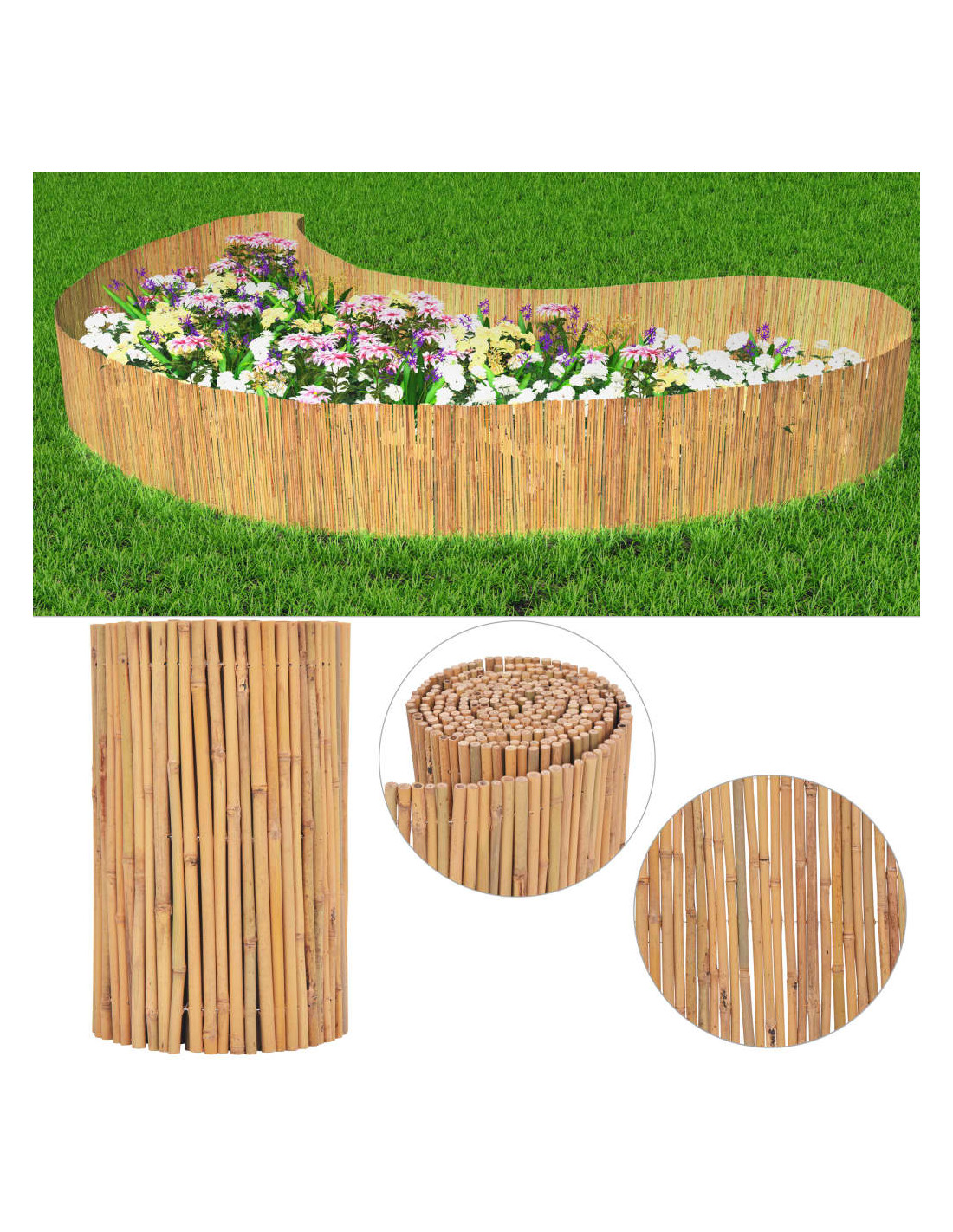 Questa recinzione da giardino è realizzata in bambù dalla forma circolare e può essere utilizzata per separare sezioni del giardino o per delimitare un percorso o un vialetto di ingresso aggiungendo un tocco di fascino tropicale all'ambiente esterno. Il suo aspetto naturale si adatta a qualsiasi stile di arredamento da giardino. Grazie alle fascette o ai punti metallici che mantengono la recinzione flessibile in posizione verticale, è molto facile creare sezioni di forme e dimensioni diverse.