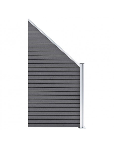 Questo pannello per recinzione in WPC presenta una stampa che richiama le venature del legno su un lato e un colore uniforme sull'altro lato, così da poter scegliere il vostro stile preferito. Il nostro pannello, in composito di legno e plastica, non richiede alcun trattamento aggiuntivo come l'oliatura o la verniciatura. È molto duraturo e resistente alla muffa e alla ruggine. Grazie al profilo superiore in alluminio, i pannelli possono essere fissati l'uno all'altro, aumentandone la rigidità e la resistenza agli urti. Progettati con un sistema modulare, i pannelli di recinzione sono facili da installare e consentono di espandere la recinzione a proprio piacimento. I montanti sono dotati di tre fessure, che consentono di assemblare la recinzione in vari modi, ad esempio in una linea retta (180 gradi), ad angolo retto (90 gradi) o a forma di "T". La consegna include 90 tavole in WPC, 11 pali e 10 barre in alluminio.