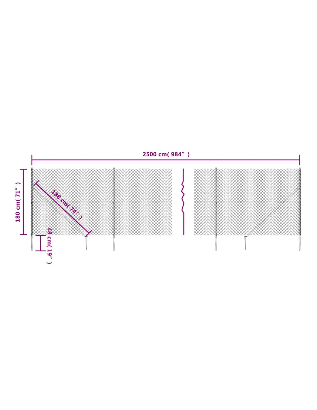 - Dimensioni della recinzione: 1,8 x 25 m (A x L)