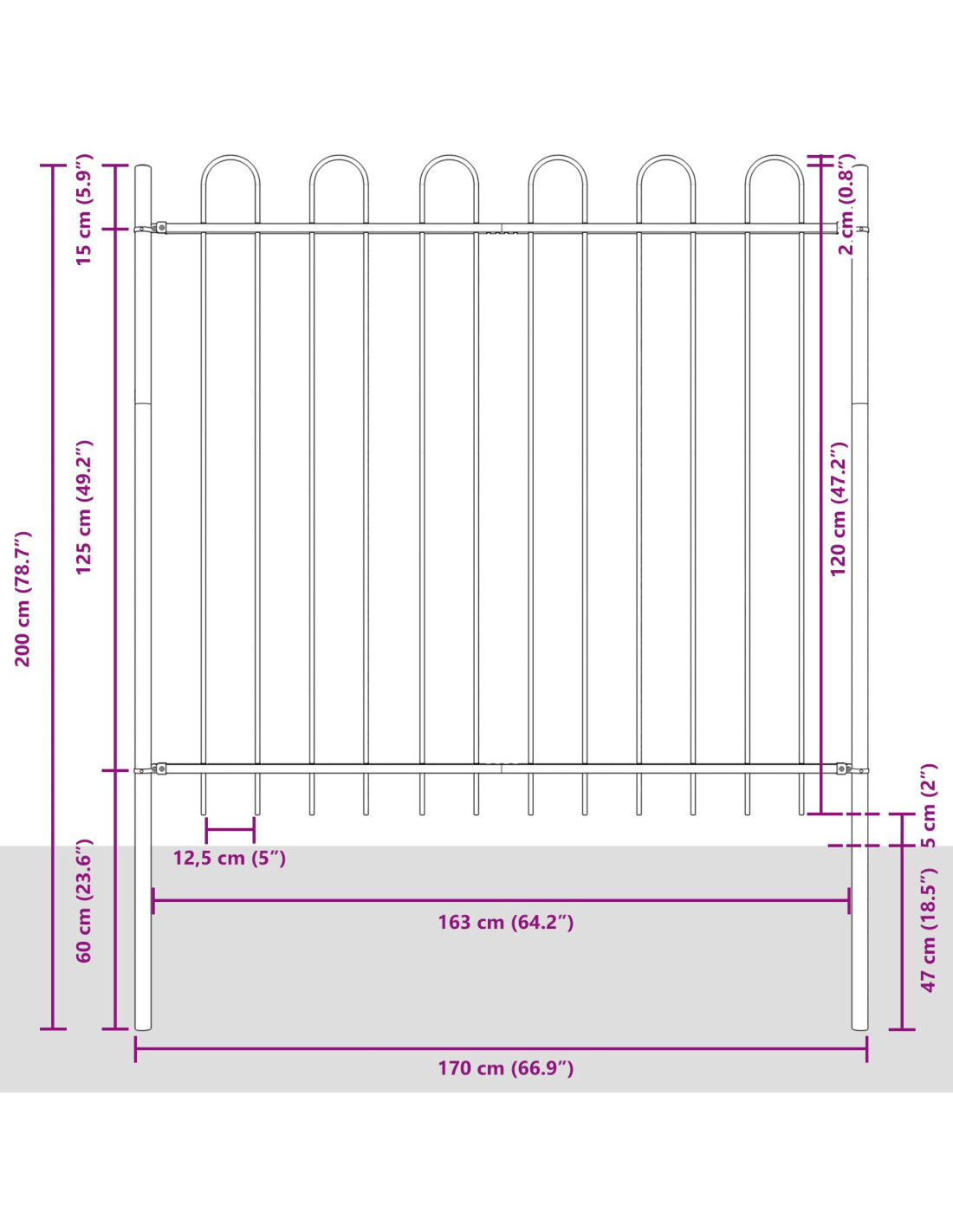 Questo pannello di recinzione da giardino, in robusto acciaio verniciato a polvere, è fatto per stare all'aperto, perfetto per abbellire giardini e terrazzi che hanno bisogno di una delimitazione sicura. La sua forma rettangolare si integra facilmente con vari stili esterni, non solo come soluzione pratica per definire gli spazi, ma anche come bell'aggiunta nel tuo ambiente. Gli utenti apprezzeranno la finitura resistente e un design pensato per durare, rendendolo ideale per ogni contesto da giardino.