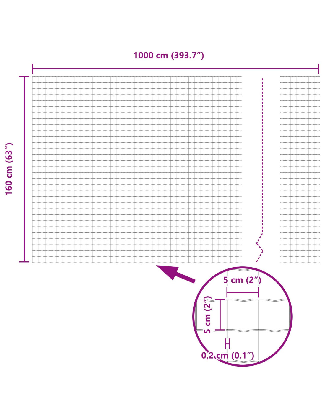 - Dimensioni complessive: 1000 x 2,7 x 160 cm (L x P x A)