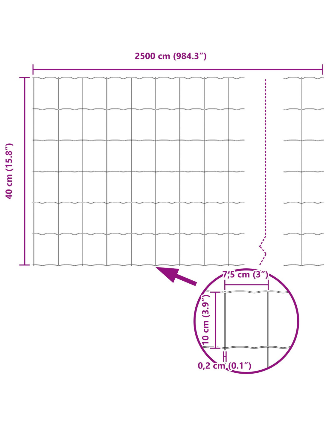 - Dimensioni complessive: 2500 x 2,7 x 40 cm (L x P x A)