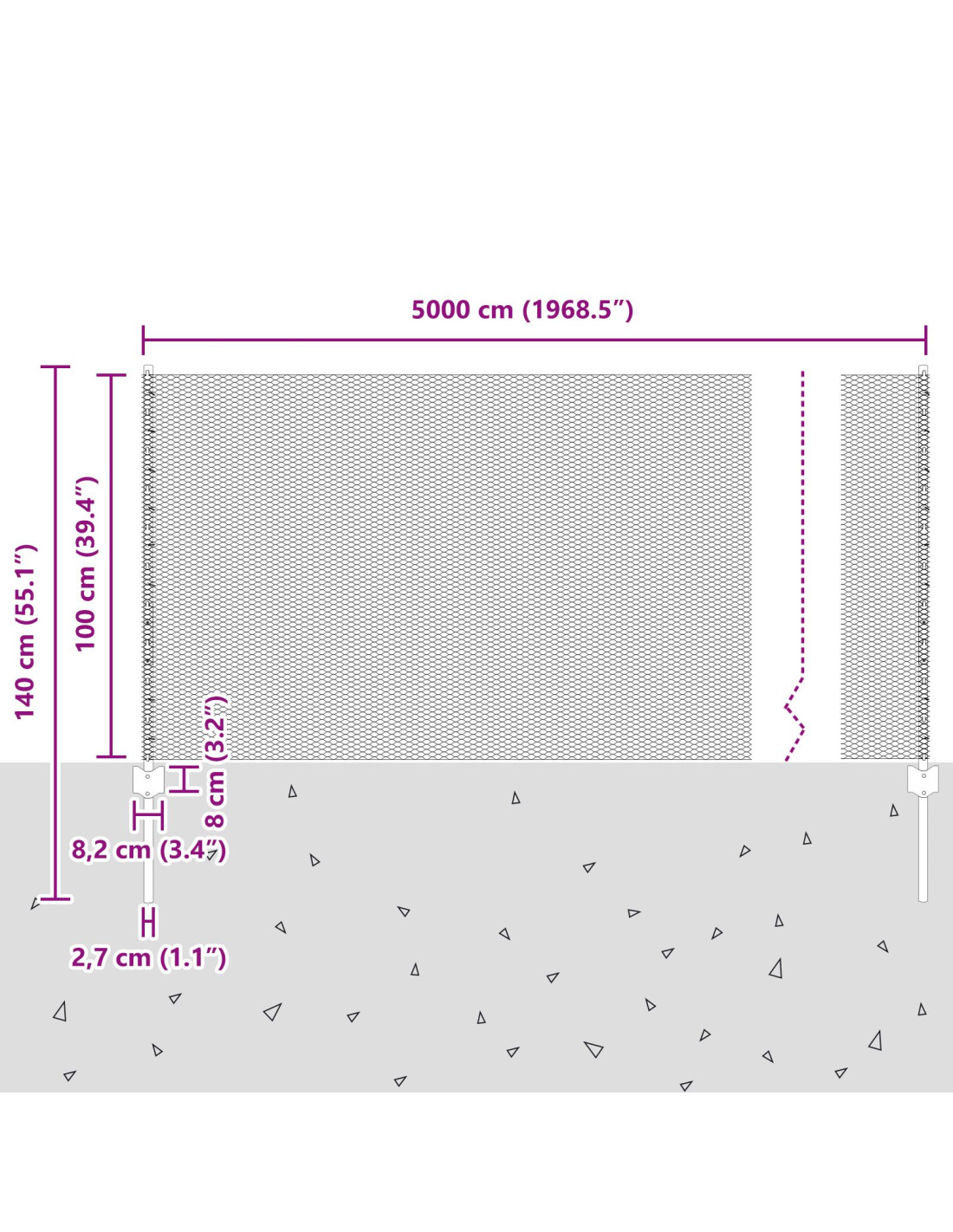 - Dimensioni complessive: 5000 x 2,7 x 100 cm (L x P x A)