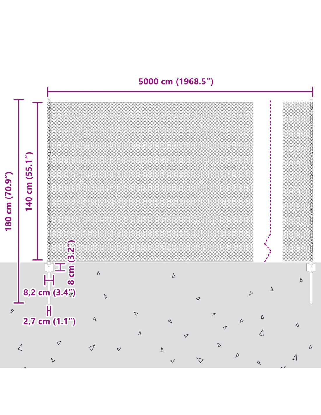 - Dimensioni complessive: 5000 x 2,7 x 140 cm (L x P x A)