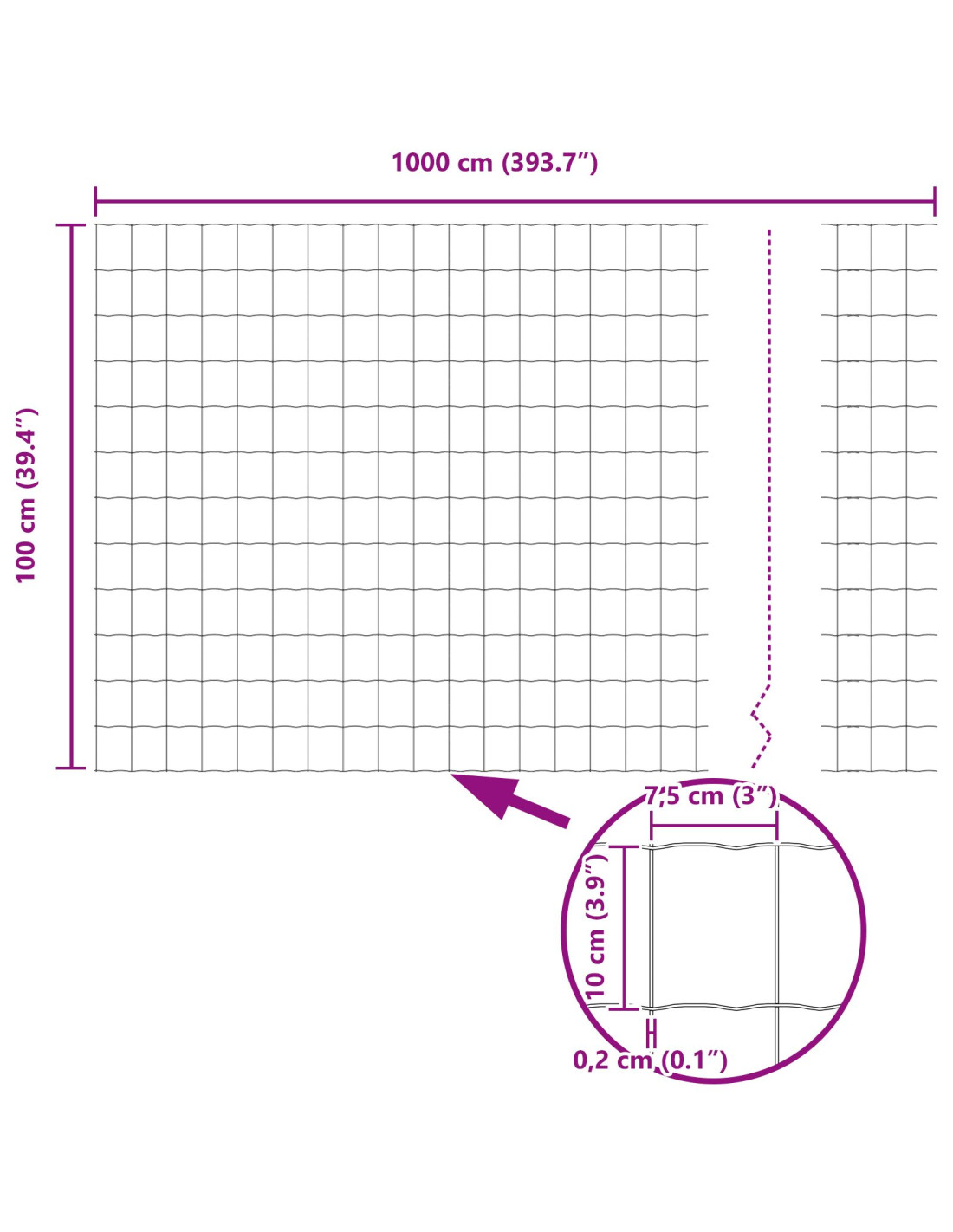 - Dimensioni complessive: 1000 x 2,7 x 100 cm (L x P x A)