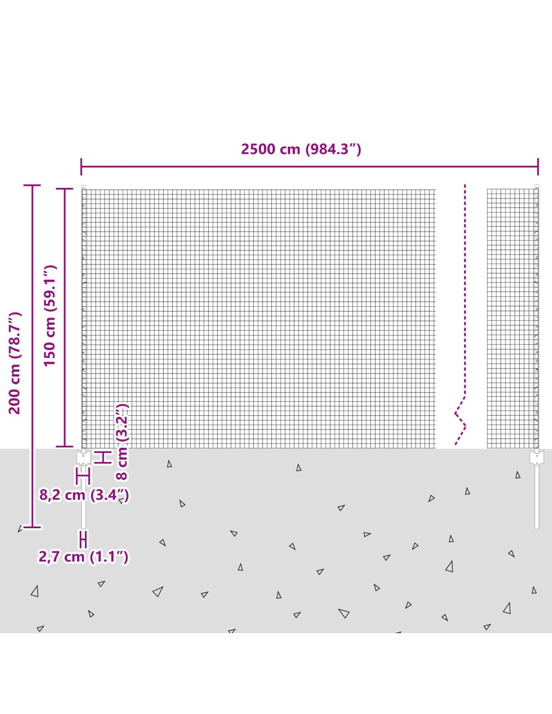 - Dimensioni complessive: 2500 x 2,7 x 150 cm (L x P x A)