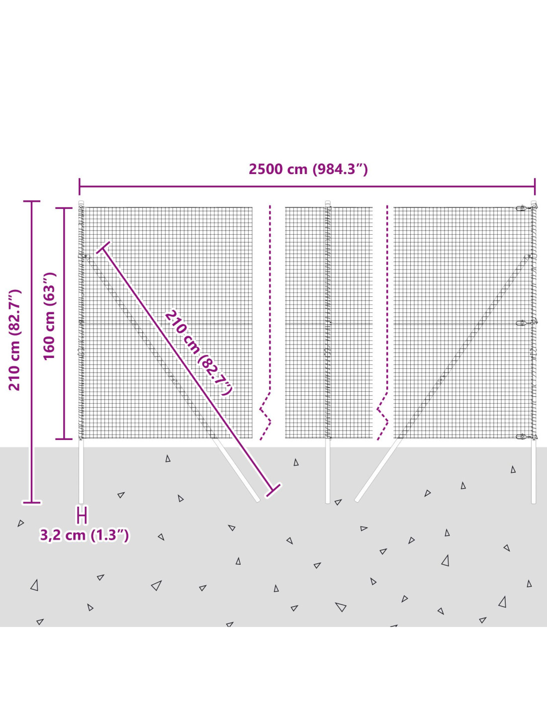 - Dimensioni complessive: 2500 x 3,2 x 160 cm (L x P x A)