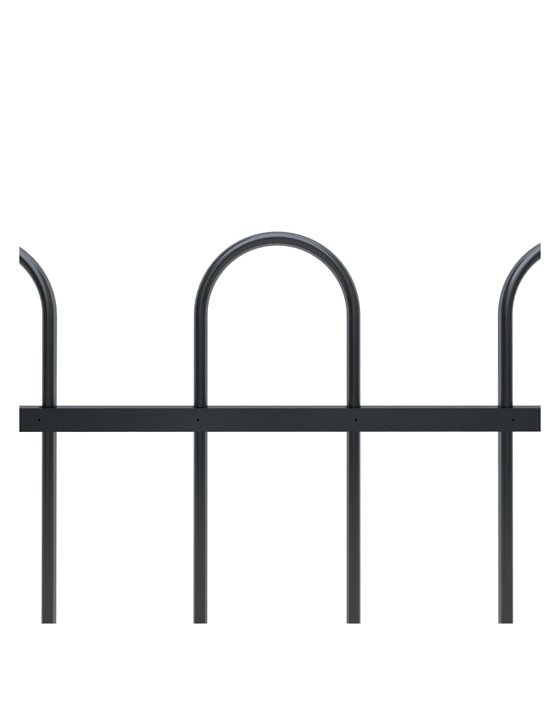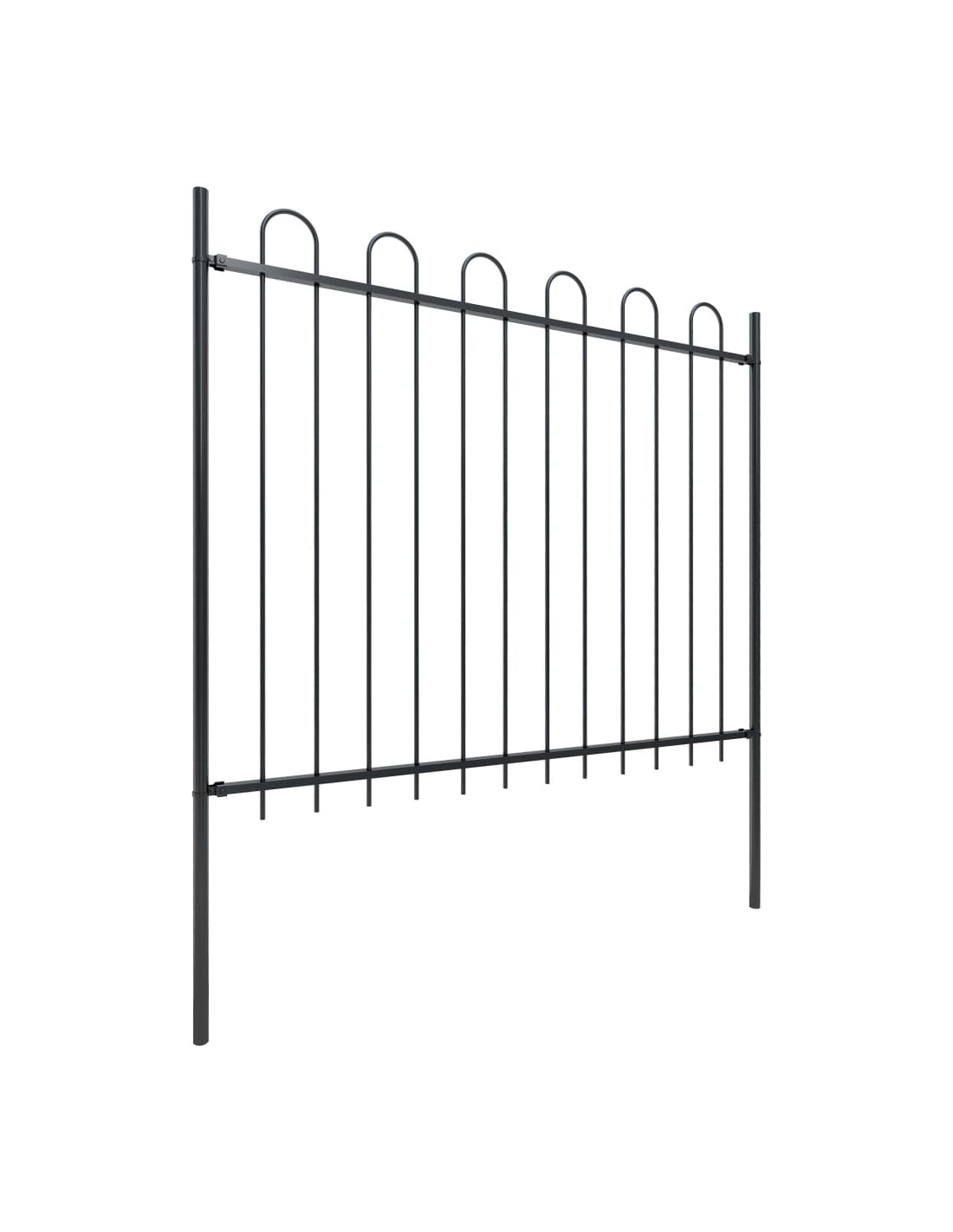 Con barre verticali sormontate da punte tonde e robuste assi orizzontali di rinforzo per il telaio, questa recinzione per giardini offre un alto grado di sicurezza. Il recinto è realizzato in acciaio ad elevata resistenza verniciato a polvere, materiale che rende il prodotto estremamente resistente, robusto e durevole. Grazie ai materiali di montaggio inclusi la recinzione è facile da assemblare.