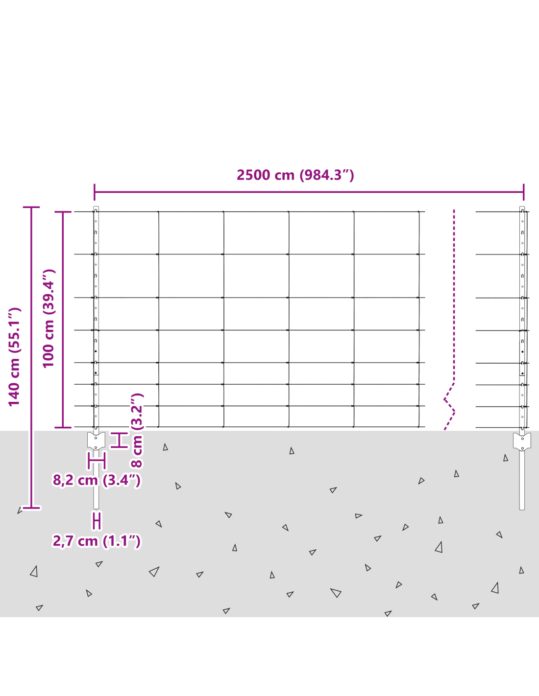 - Dimensioni complessive: 2500 x 2,7 x 100 cm (L x P x A)