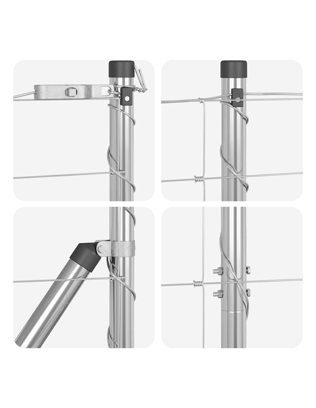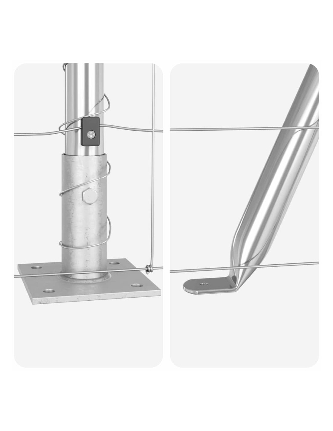 - Costruzione in acciaio zincato: Ogni palo è progettato in acciaio per giardini, offrendo una solida struttura. La finitura zincata aumenta la durata, mantenendo i pali in ottime condizioni durante tutte le stagioni.