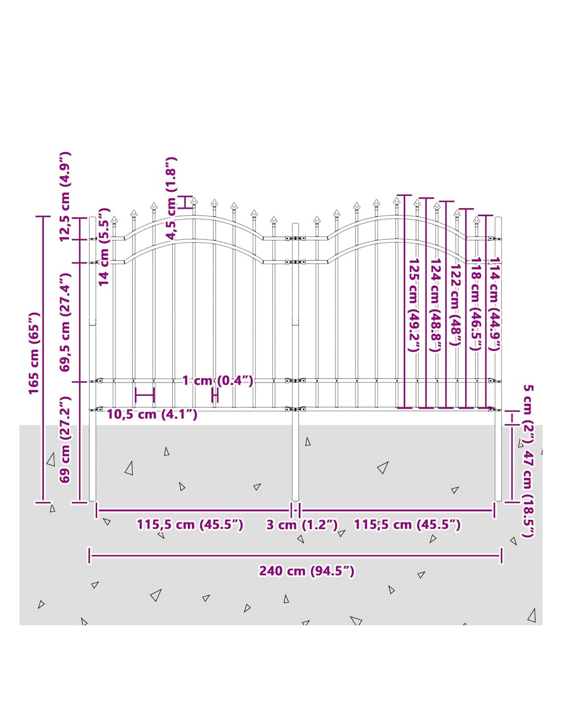 - Materiale: Fatta di acciaio verniciato a polvere, questa recinzione resiste bene al maltempo e alla corrosione. La verniciatura a polvere non solo la rende più duratura ma le conferisce anche un aspetto gradevole per un uso prolungato all'aperto.