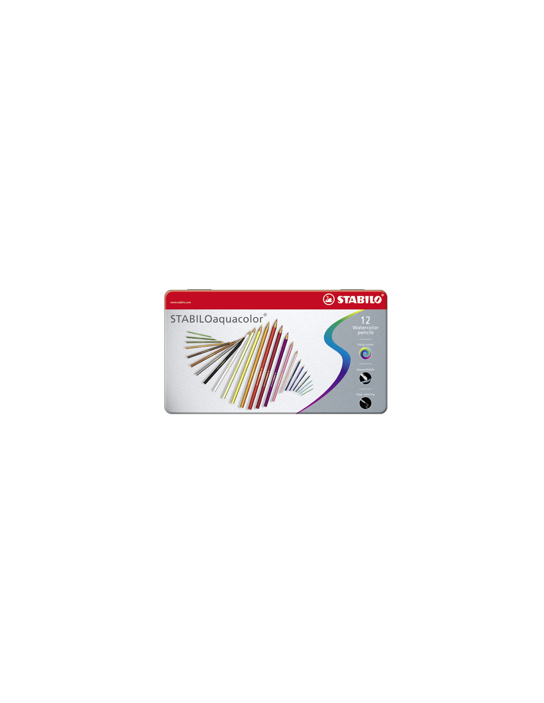 Scatola in metallo STABILO Aquacolor. Perfette come idea regalo, ogni scatola contiene 12 pastelli acquarellabili dai colori intensi e vibranti. Caratteristiche: - Può stupire con incredibili effetti creativi - Adatta per scoprire nuove tecniche di pittura - Spessore del tratto: 2,8 mm - Ricca applicazione di colore - Il complemento ideale per qualsiasi opera in acquerello