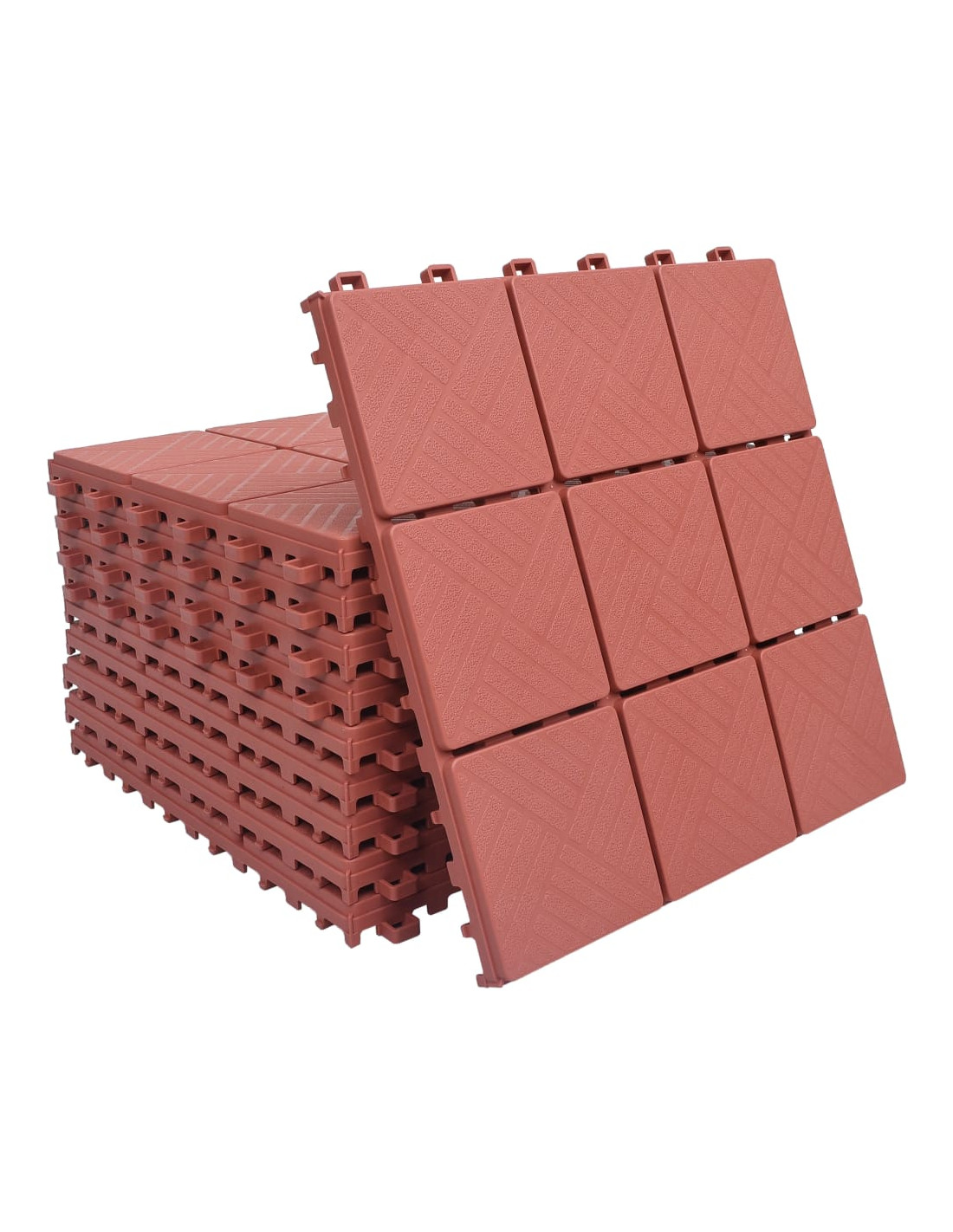 Questo set di piastrelle decking, composto da 10 pezzi, copre una superficie totale di 0,93 metri quadrati, e sarà perfetto per terrazze, balconi, bagni, piscina o spa.