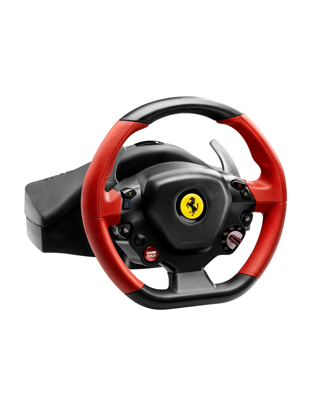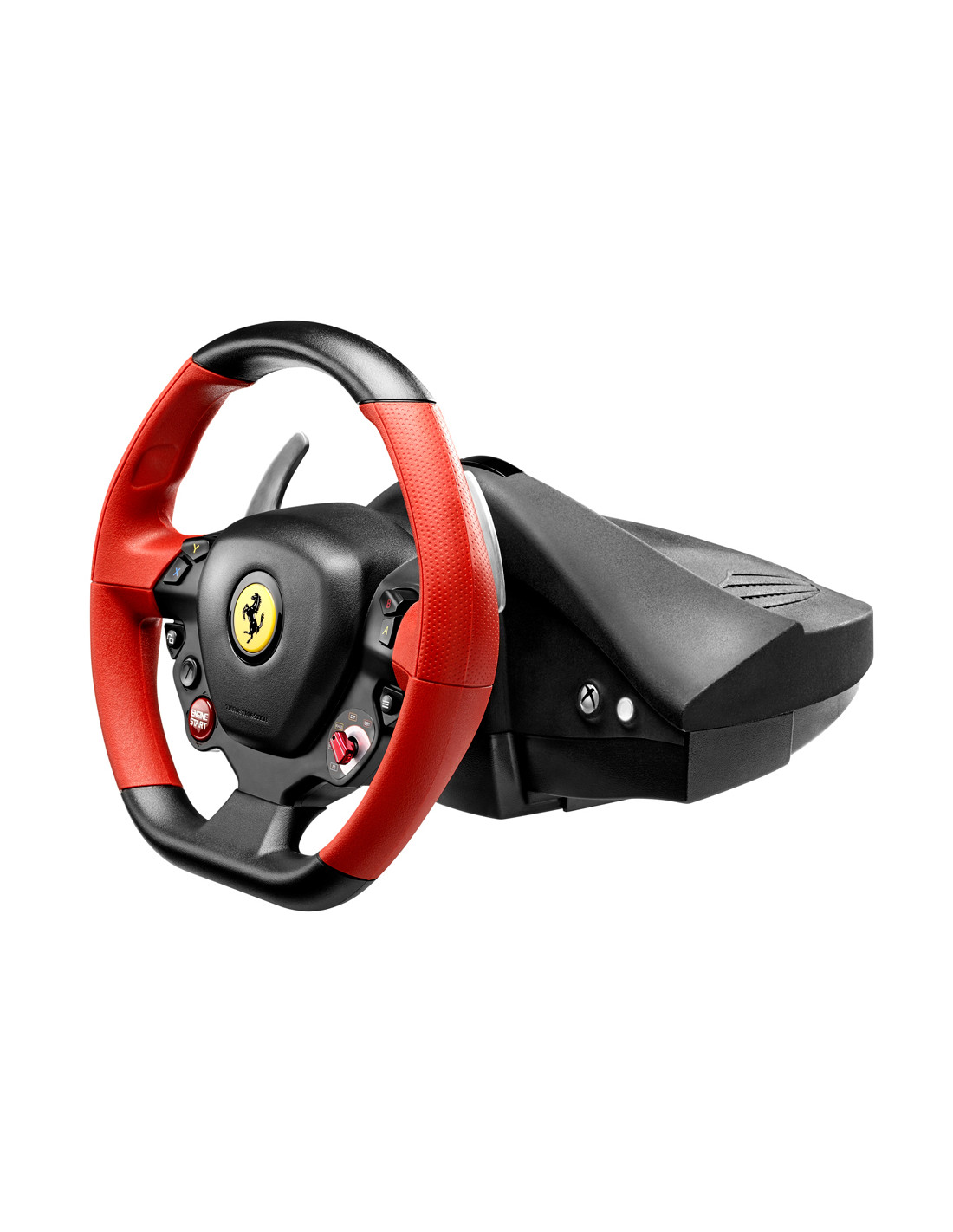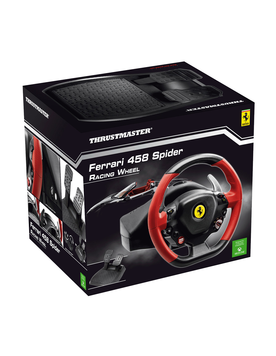 Thrustmaster Ferrari 458 Spider. Tipo di dispositivo: Sterzo + Pedali, Piattaforme di gioco supportate: Xbox One, Tasti funzione per il controllo del gioco: D-pad. Tecnologia di connessione: Cablato, Interfaccia dispositivo: USB. Colore del prodotto: Nero, Rosso. Larghezza: 370 mm, Profondità: 320 mm, Altezza: 3,15 mm. Larghezza imballo: 320 mm, Profondità imballo: 370 mm, Altezza imballo: 320 mm