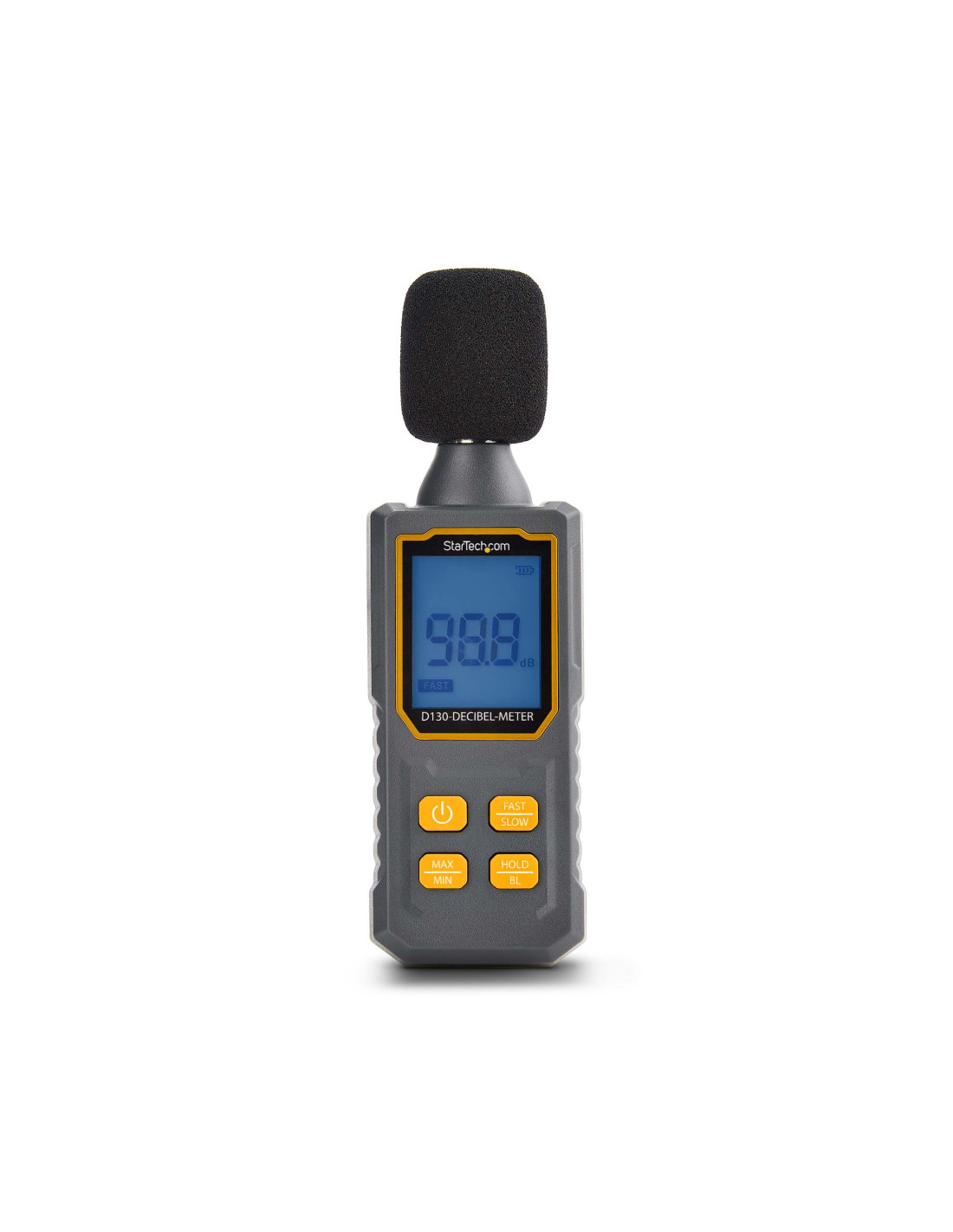 Questo lettore di rumore portatile è in grado di effettuare letture precise con un intervallo da 30 a 130dBA, una precisione di +/- 1,5dB e una risoluzione di 0,1dB.