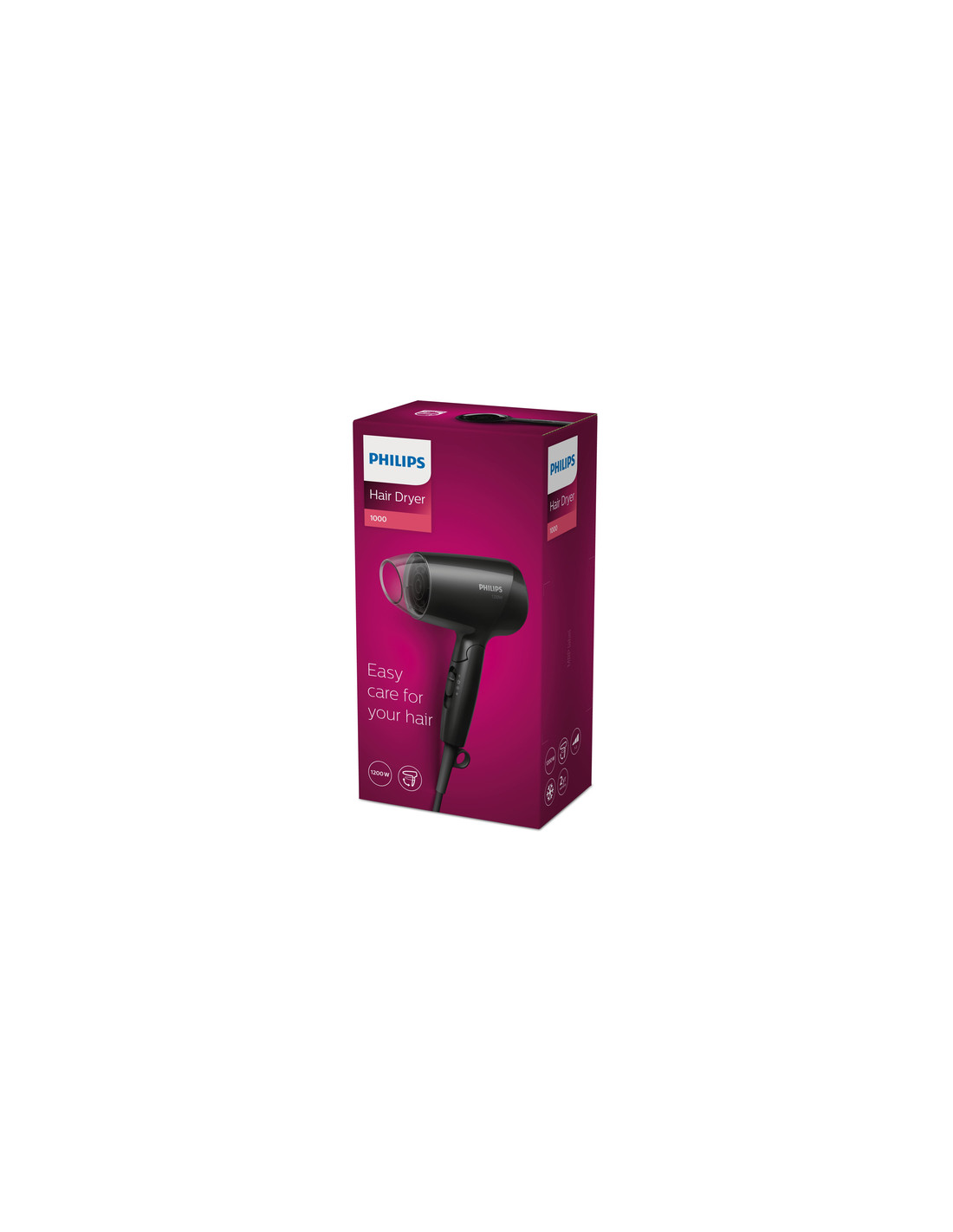 Il nuovo asciugacapelli Philips Essential Care ha un design curato, è compatto e potente. La potenza di 1200 W permette di asciugare i capelli in modo veloce e delicato. Le diverse impostazioni di velocità consentono di adeguare la potenza alle diverse esigenze e di salvaguardare i capelli.