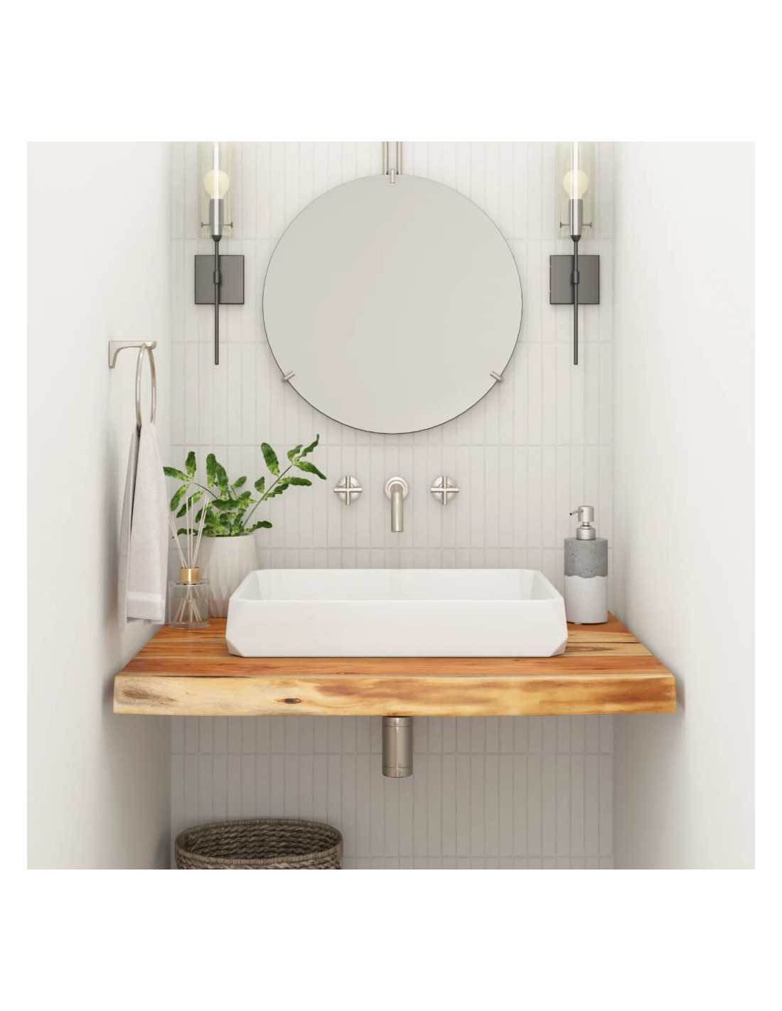 - Applicazioni versatili: Il piano d'appoggio in legno può essere utilizzato come piano d'appoggio per il bagno, mensola, piano d'appoggio per un mobile, e altro ancora. Potete anche abbinarlo a qualsiasi tipo di gamba in base alle vostre esigenze.