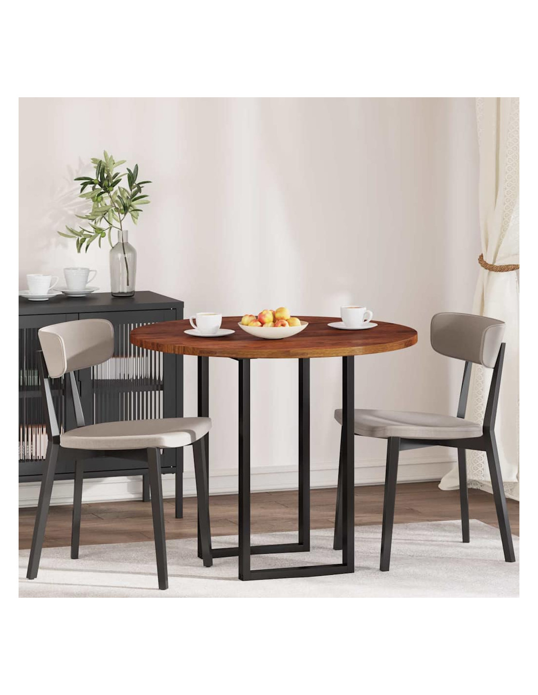 - Design Moderno: Con linee pulite e senza fronzoli, il design di questo tavolo si sposa bene con interni moderni o classici. La forma rotonda incoraggia le conversazioni, perfetta per momenti accoglienti.