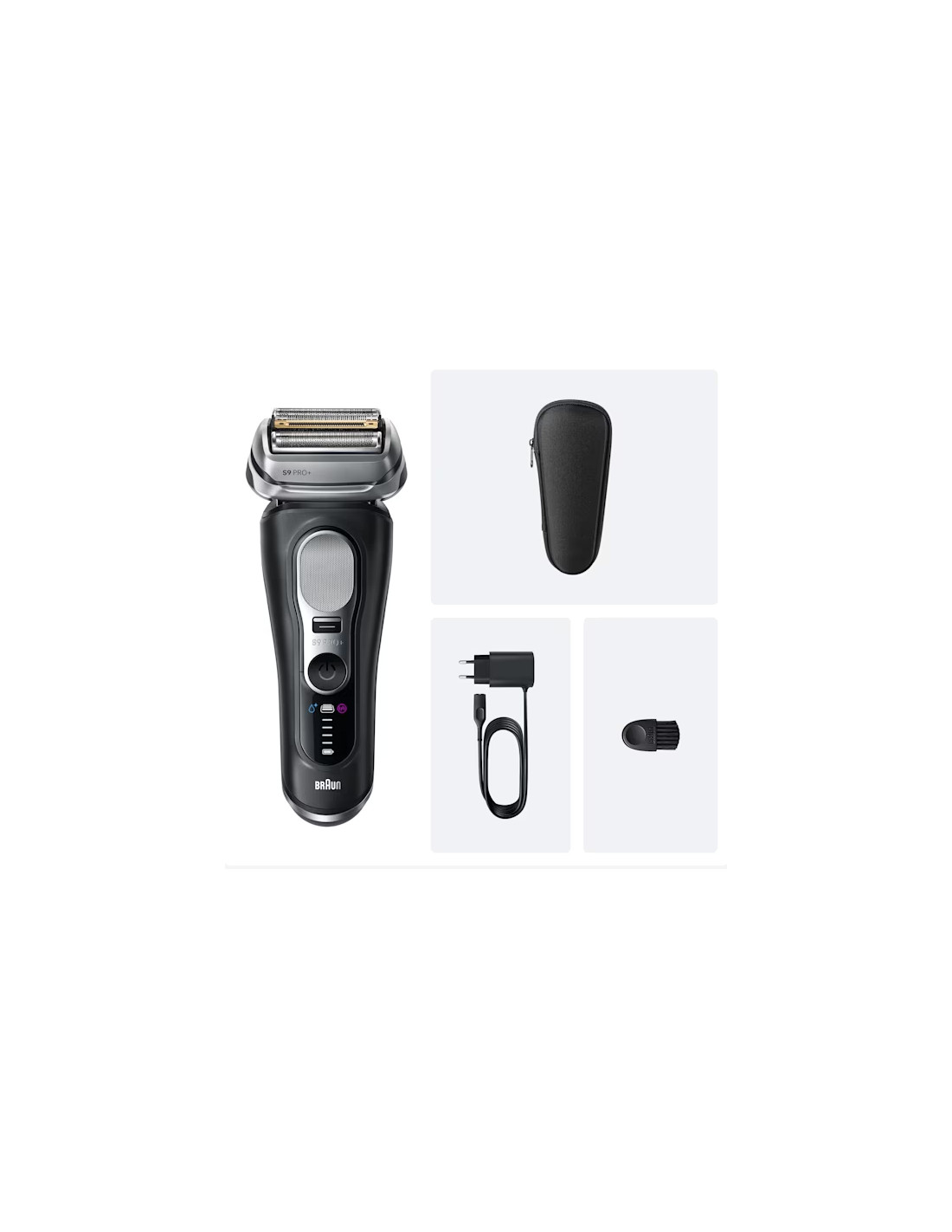 Braun Series 9 Pro+ 9600s. Sistema di rasatura: Rasoio, Colore del prodotto: Nero, Tipo di controllo: Pulsanti. Alimentazione: Batteria, Tecnologia batteria: Ioni di Litio, Tipo batteria: Batteria integrata. Larghezza: 66 mm, Profondità: 44 mm, Altezza: 168 mm. Tipo di imballo: Scatola. Quantità per pacco: 1 pz