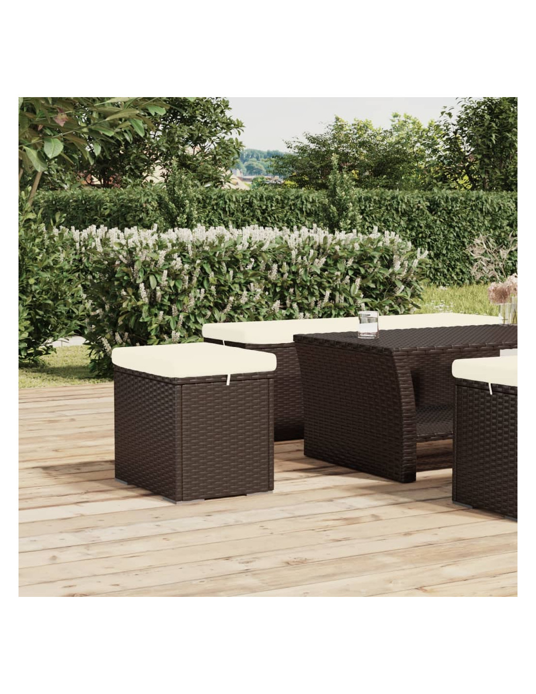 - Materiale resistente: Il rattan PE, noto anche come polyrattan, è resistente agli agenti atmosferici e facile da pulire. Rimane bello all'esterno per un lungo periodo di tempo. Offre grande qualità, convenienza e aspetto estetico.