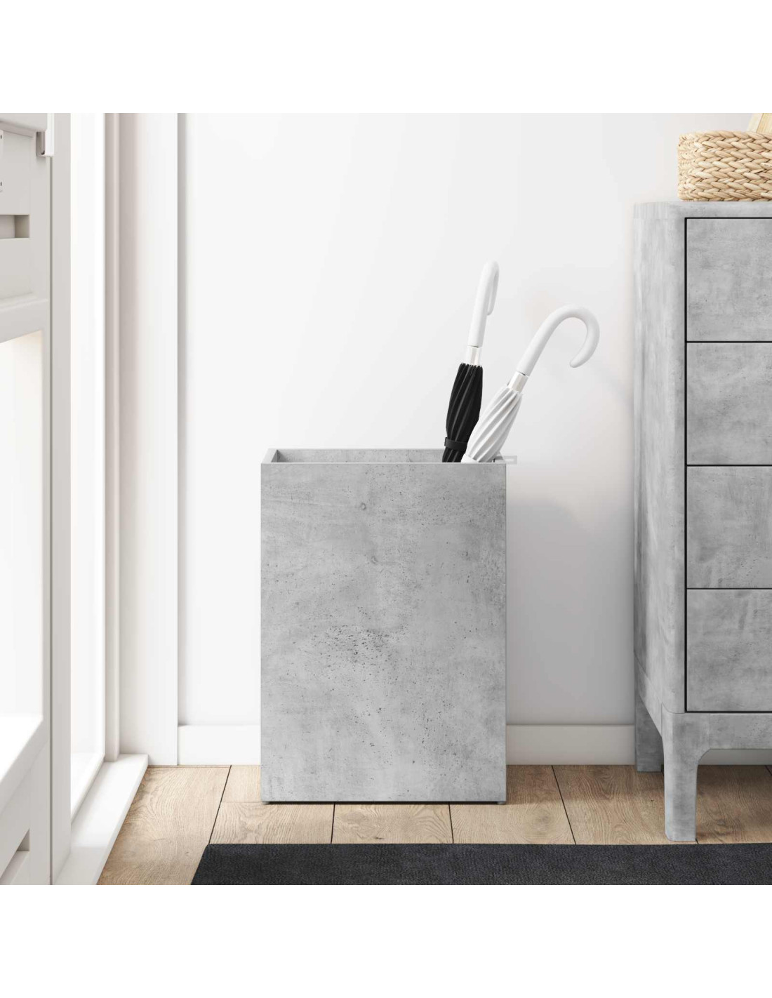 - Costruzione in legno ingegnerizzato Questo portaombrelli è robusto e realizzato in legno ingegnerizzato per garantire durata e affidabilità nell'uso quotidiano. Non solo è resistente, ma ha anche un'estetica piacevole, con una superficie liscia adatta ai moderni ambienti.