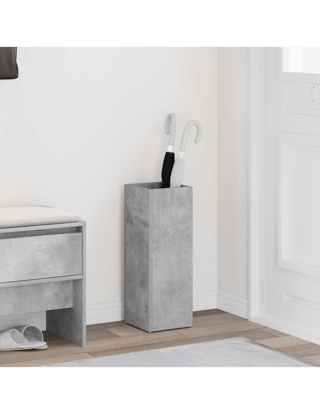 - Costruzione in legno ingegnerizzato Questo portaombrelli è robusto e realizzato in legno ingegnerizzato per garantire durata e affidabilità nell'uso quotidiano. Non solo è resistente, ma ha anche un'estetica piacevole, con una superficie liscia adatta ai moderni ambienti.
