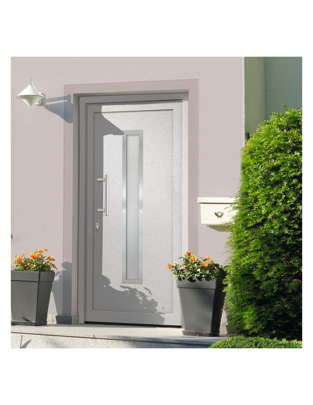 La nostra porta d'ingresso è dotata di un telaio e un pannello di qualità, soglia in alluminio, cerniere 3d regolabili (3 cerniere per porta), 5 serrature a fungo, vetri isolanti e rinforzo in acciaio da 1,2 mm. Questa porta d'ingresso in alluminio si distingue per la sua eccellente qualità e l'elevata praticità della chiusura.