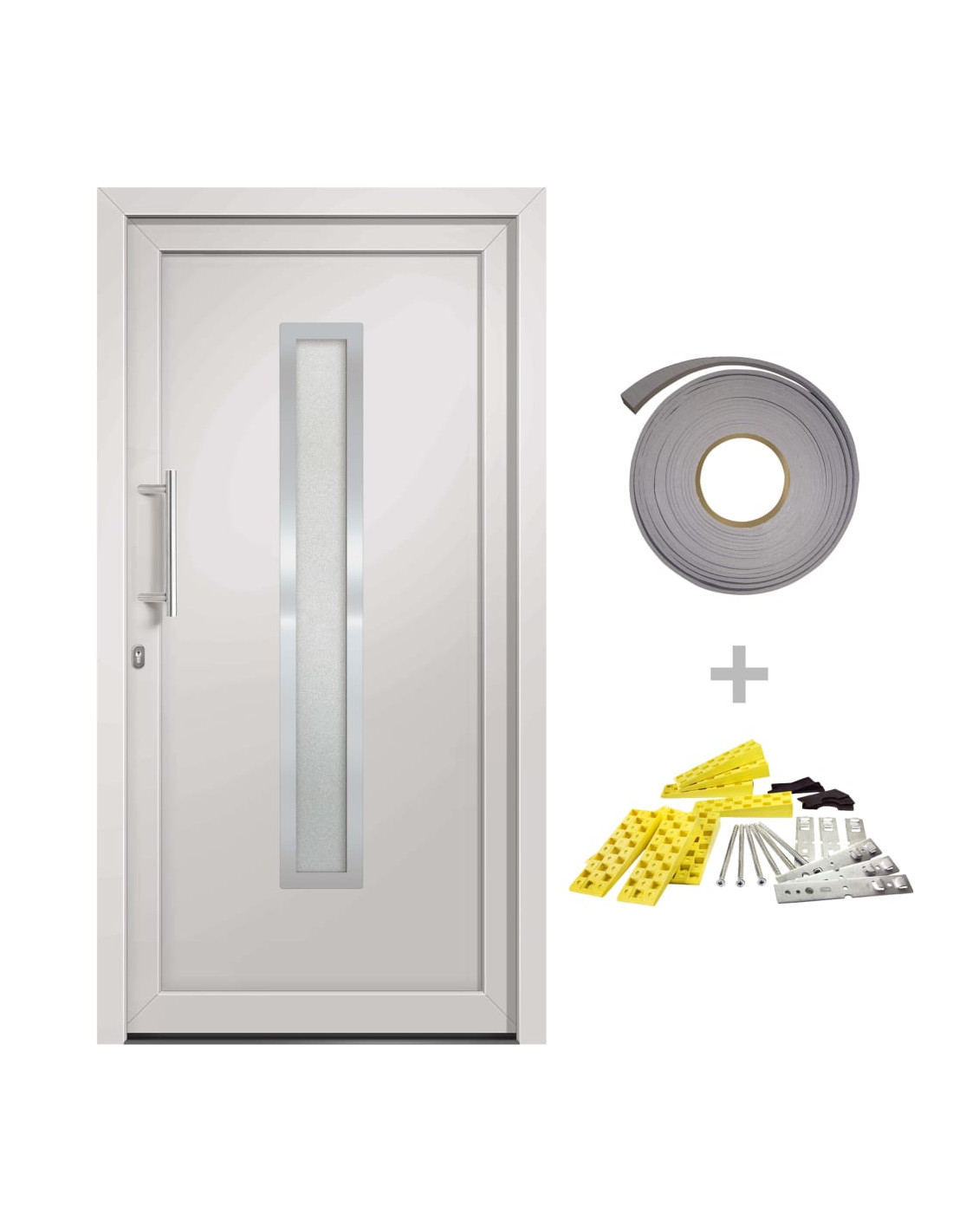 Questo prodotto fornisce un kit completo poiché include la maniglia di apertura in acciaio inossidabile, la maniglia interna, il cilindro profilato, le chiavi, il nastro sigillante e il set di montaggio.