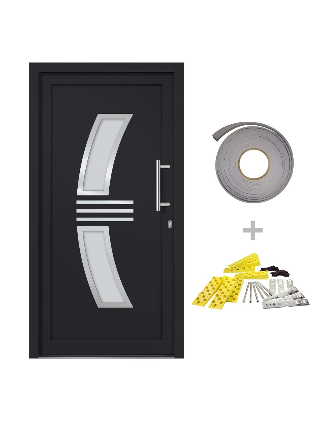 Questa porta è dotata di telaio e riempimento di qualità, soglia in alluminio, cerniere regolabili 3D (3 cerniere per porta), 5 serrature a fungo, vetri isolanti e rinforzo in acciaio da 1,2 mm. La porta d'ingresso colpisce anche per la qualità, la robustezza e l'elevata comodità di chiusura. Viene fornita con un kit completo che include il set di maniglie della porta, chiavi, cilindro della chiave, nastro sigillante e set di montaggio.