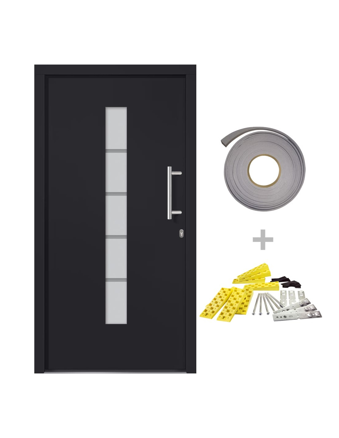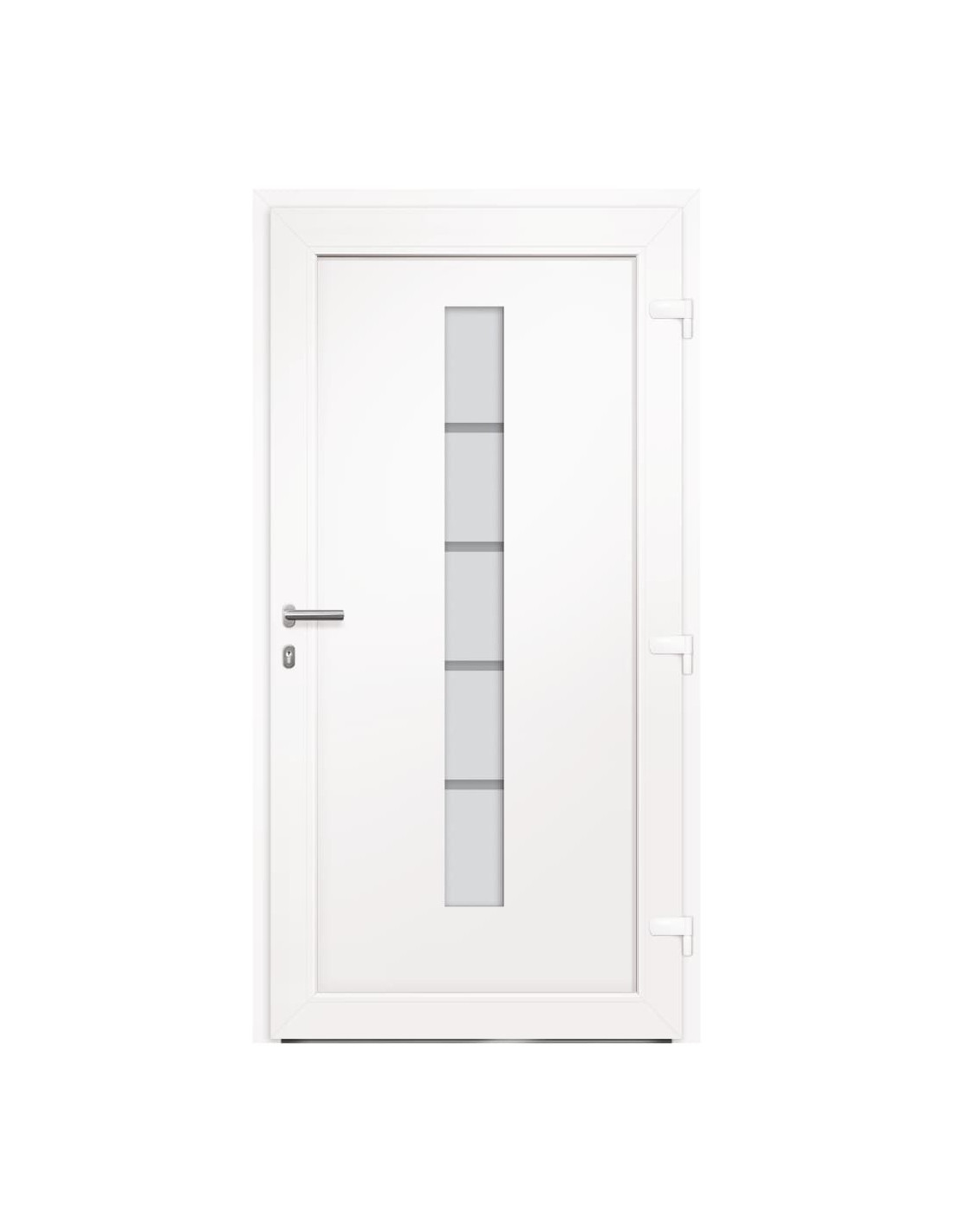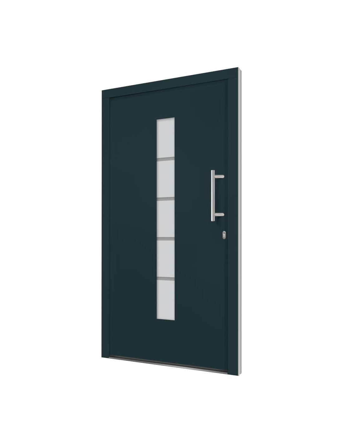 Questa porta d'ingresso è dotata di un robusto telaio e riempimento, soglia in alluminio, cerniere regolabili, serratura di sicurezza a 5 vie design a bullone, vetri isolanti e rinforzo in acciaio zincato. La porta d'ingresso, realizzata in alluminio e materiale PVC, colpisce anche per la qualità robusta e l'elevata comodità di chiusura. Viene fornita con un kit completo comprensivo di maniglia di spinta in inox, maniglia interna, chiavi, nastro sigillante e set di montaggio.
