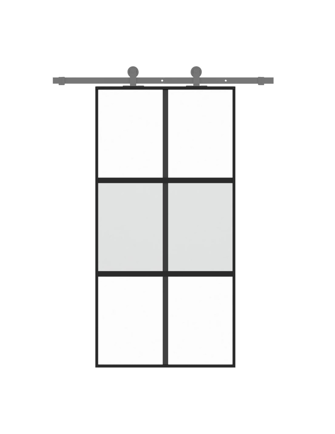 Porta Scorrevole Nera 102,5x205 cm Vetro Temperato e Alluminio
