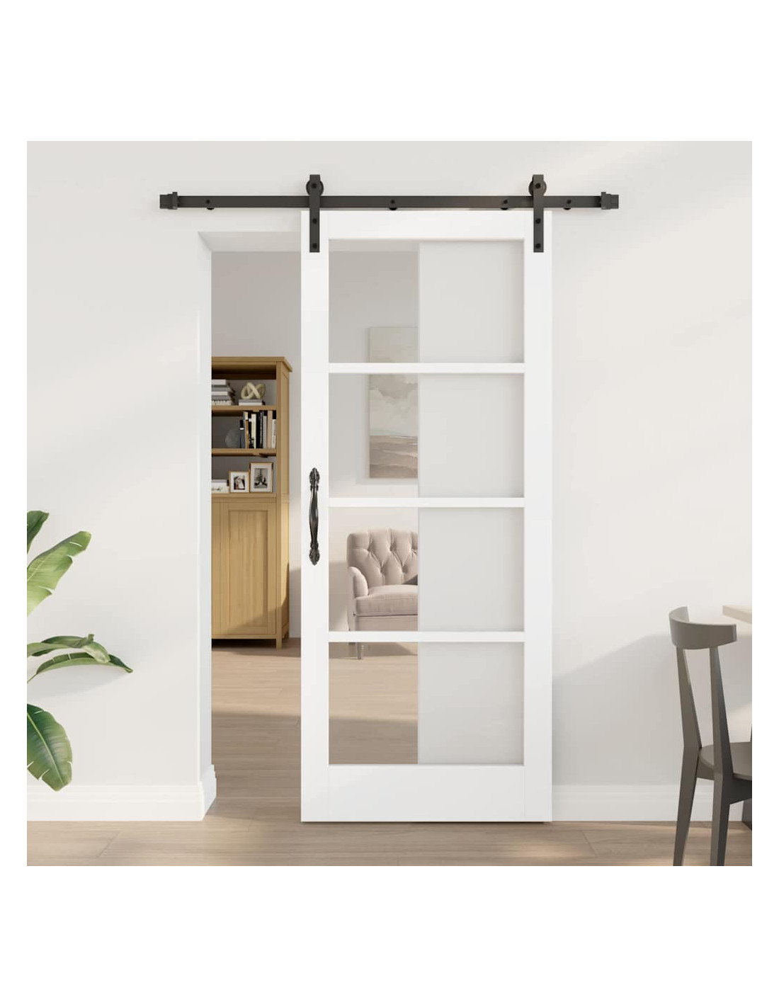 Questa porta scorrevole unisce design moderno e funzionalità, perfetta per ogni casa contemporanea. Con la sua forma rettangolare e le linee pulite, porta un’estetica minimalista che si adatta bene a stanze sia da letto che a soggiorno. La combinazione di legno massello di pino, vetro e acciaio verniciato a polvere le dà un aspetto molto elegante. Materiali di alta qualità: Fatta in legno massello di pino e vetro, questa porta scorrevole offre eleganza e durata. I materiali sono scelti per la loro forza, garantendo un ingresso sicuro e stiloso. Componenti scorrevoli integrati: È progettata per un movimento fluido, così può scorrere senza sforzo. Questa caratteristica ottimizza lo spazio e aggiunge al look moderno della porta. Funzionamento silenzioso: Ogni movimento è facile e silenzioso, utile per mantenere quiete e comfort in casa. Compatibilità versatile per le stanze: Perfetta per camere da letto e soggiorni, si adatta a diverse esigenze e stili di arredamento, rendendo ogni stanza coesa. Manutenzione semplice: È facile tenere la porta scorrevole in ordine: basta passarci un panno asciutto per rimuovere polvere e macchie. Questa routine semplice la mantiene bella e funzionale per anni.