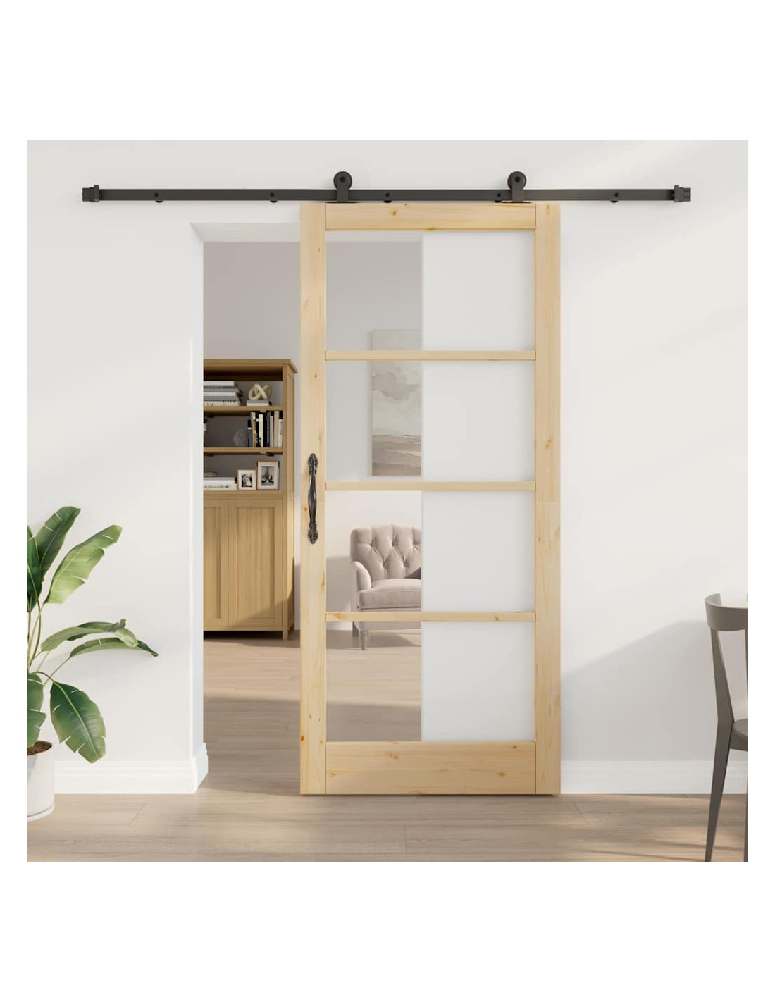 Questa porta scorrevole moderna è un mix perfetto di semplicità e funzionalità, in legno massello di pino e vetro. Progettata per interni, il suo design minimalista e le linee pulite la rendono ideale per sale da pranzo e spazi living, permettendo di separare le stanze senza oscurare la luce. Costruzione in legno massello di pino e vetro Questa porta scorrevole unisce legno massello e vetro trasparente, aggiungendo eleganza a ogni stanza. La solidità dei materiali assicura prestazioni durature, combinando bellezza e funzionalità nella tua casa. Componenti scorrevoli Grazie al suo meccanismo di scorrimento premium, la porta funziona in modo fluido e silenzioso, migliorando l'esperienza di transizione fra le stanze. Perfetta per ambienti tranquilli dove la serenità è fondamentale. Ideale per spazi abitativi Perfetta per sale da pranzo e living, questa porta facilita la separazione degli spazi senza rinunciare all'estetica. Il vetro trasparente si integra bene in molti stili, adattandosi a vari arredamenti. Stile moderno minimale Il design semplice offre un look contemporaneo che si adatta a ogni ambiente. Le sue linee pulite e il minimalismo la rendono versatile, sia in casa che in ufficio. Manutenzione semplice Questa porta è pensata per essere facilmente curata—basta un panno asciutto per mantenerla in ordine. La soluzione perfetta per chi desidera un prodotto che richiede poca manutenzione, così puoi goderti appieno il tuo spazio.