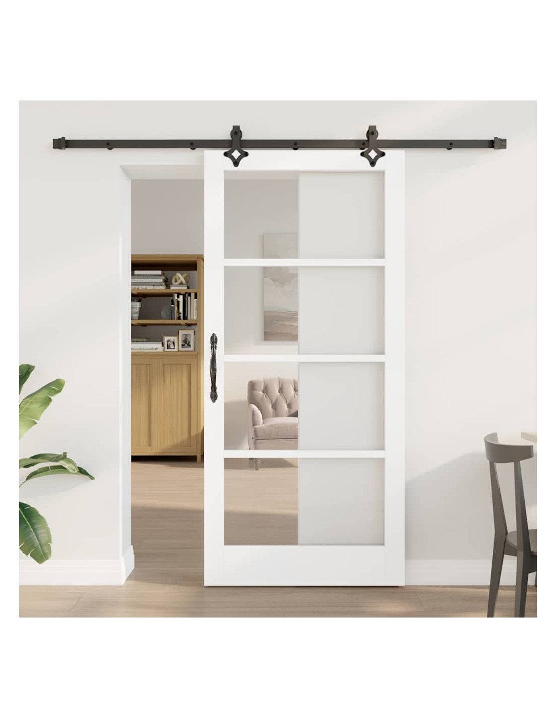 La Porta Scorrevole con Set di Ferramenta è un'aggiunta versatile e trendy agli interni moderni. Questa soluzione semplice ma stilosa sfrutta al massimo lo spazio e scorre in modo silenzioso e fluido, perfetta per chi cerca praticità senza rinunciare all'estetica. Ideale per soggiorni o corridoi, si integra facilmente in qualunque decorazione e consente transizioni semplici tra gli spazi. Composizione del materiale: Realizzata con legno massello di pino e con elementi in vetro trasparente e acciaio verniciato, questa porta scorrevole è sia resistente che bella. I materiali sono scelti per dare una struttura elegante e leggera, perfetta per interni. La combinazione del calore del legno con il vetro chiaro la rende chic e adatta a temi moderni. Componenti Inclusi: Ogni porta scorrevole arriva con un set di ferramenta completo per un'installazione facile e funzionale. I componenti sono progettati per garantire movimento regolare, riducendo rumore e attrito. Le parti trasparenti migliorano la visibilità e i fissaggi semplici mantengono un'estetica pulita. Funzione silenziosa e fluida: Pensata per essere silenziosa, il meccanismo di scorrimento è fatto per non distrarti mentre usi la porta. Questa caratteristica la rende ideale in case o spazi condivisi dove si cerca discrezione. Gli utenti possono contare su un movimento fluido grazie alla sua tecnologia avanzata. Design salvaspazio: Questa porta è l'ideale per stanze piccole, massimizzando lo spazio senza bisogno di porte a battente. Aiuta a creare un layout efficiente, specialmente dove ogni metro conta. Perfetta per la vita in città! Cura e Manutenzione: Richiede poca manutenzione per rimanere in ottime condizioni; basta un panno asciutto per rimuovere polvere e impronte e mantenerla fresca. Senza bisogno di routine di cura frequenti, questa porta scorrevole mantiene il suo fascino nel tempo.