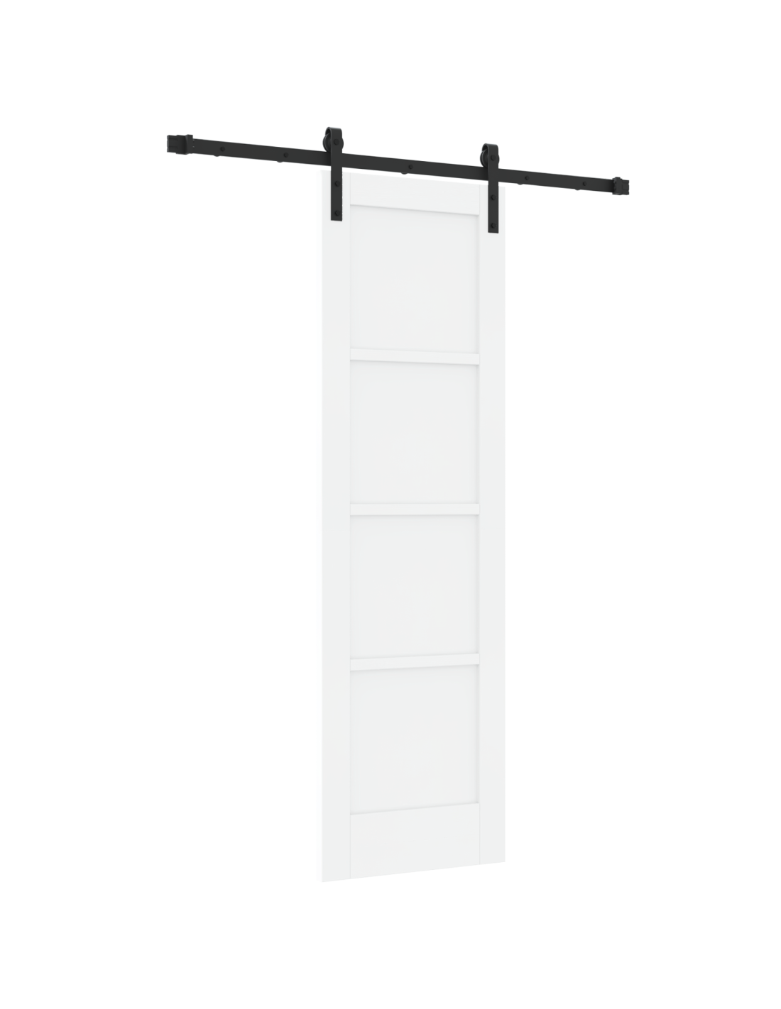 - Materiali: Questa porta scorrevole è fatta di legno massello di pino di alta qualità, che porta calore e durata. Il legno scelto garantisce un aspetto naturale che si adatta a qualsiasi interno, mentre elementi in compensato e acciaio verniciato aumentano la resistenza e la longevità. Questi materiali offrono stabilità e resistenza all'usura quotidiana.