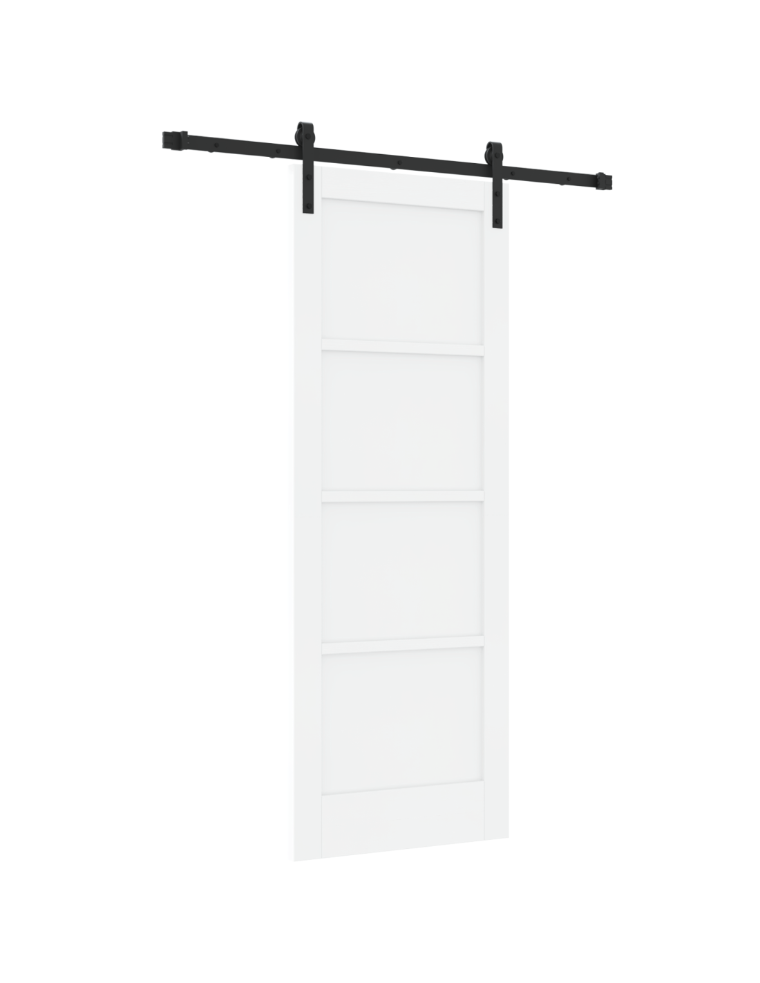 - Materiali: Questa porta scorrevole è fatta di legno massello di pino di alta qualità, che porta calore e durata. Il legno scelto garantisce un aspetto naturale che si adatta a qualsiasi interno, mentre elementi in compensato e acciaio verniciato aumentano la resistenza e la longevità. Questi materiali offrono stabilità e resistenza all'usura quotidiana.