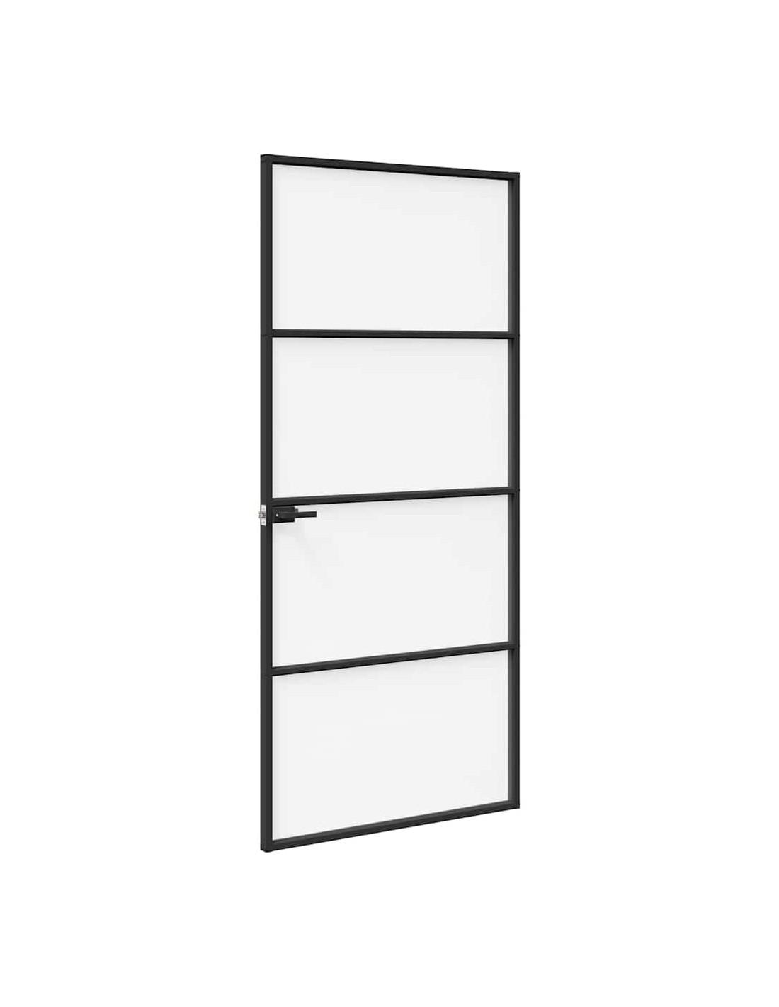 Questa porta interna ha un design moderno e semplice, con dimensioni di 76x201,5 cm. Grazie al telaio in alluminio nero, è robusta e il vetro temperato migliora la visibilità mantenendo la privacy. Perfetta per case contemporanee, si integra bene in qualsiasi spazio.