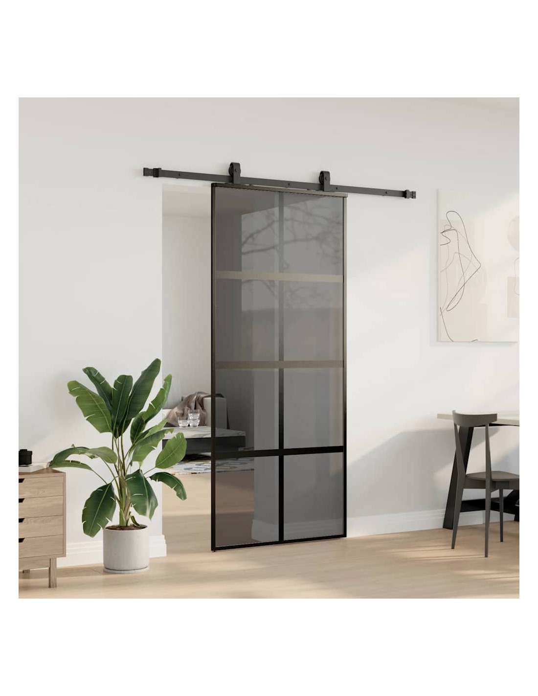 Porta Scorrevole Set Ferramenta Nera 90x205 cm Vetro Temperato