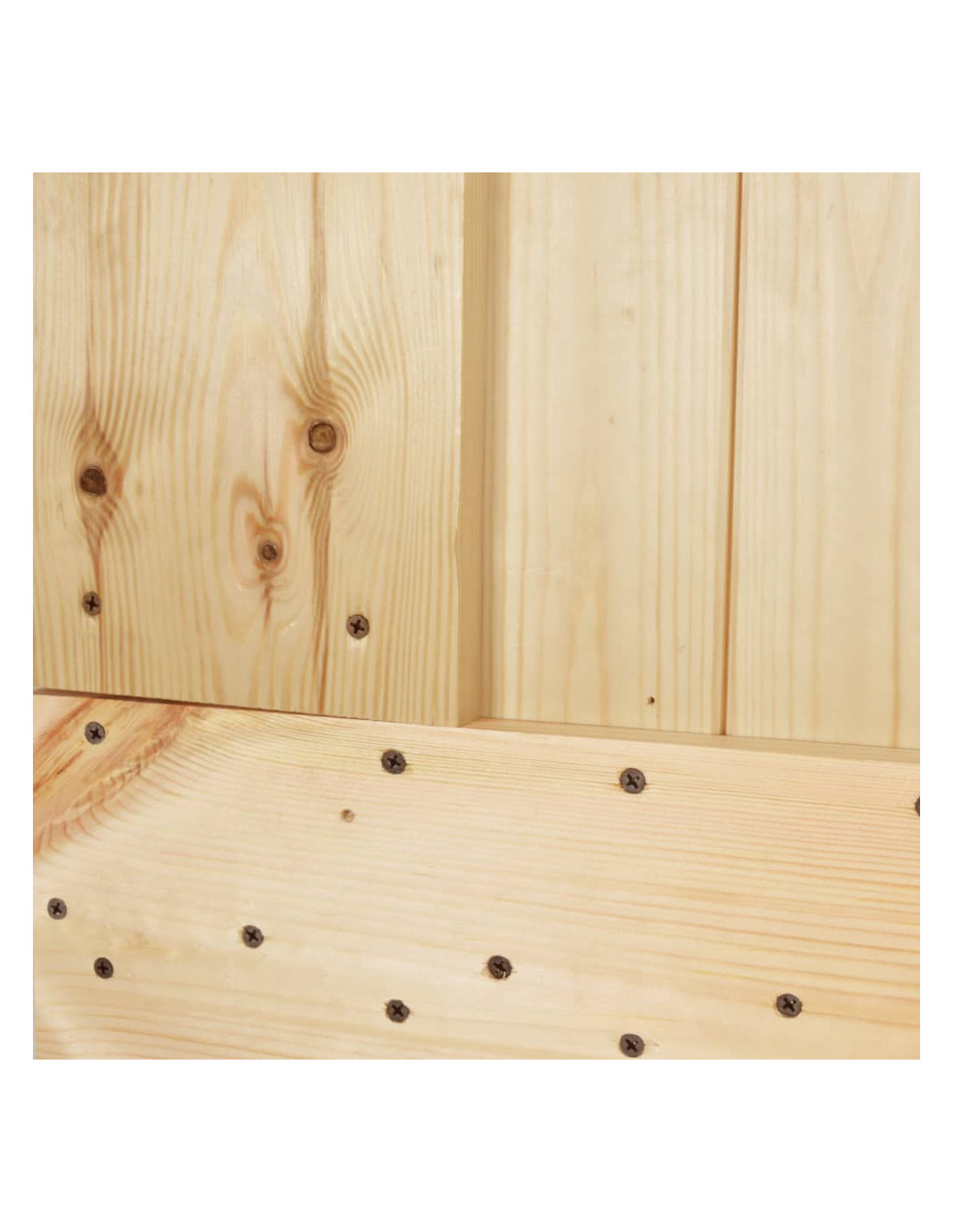 - Legno massello di pino: La porta interna è realizzata in legno massello di pino. Il legno massello di pino è un bellissimo materiale naturale. Il legno di pino ha le venature dritte e i nodi conferiscono al materiale il suo caratteristico aspetto rustico.