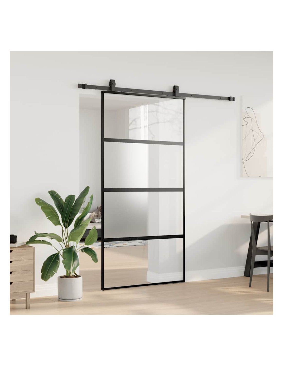 Porta Scorrevole Ferramenta Nera 102,5x205 cm Vetro Temperato